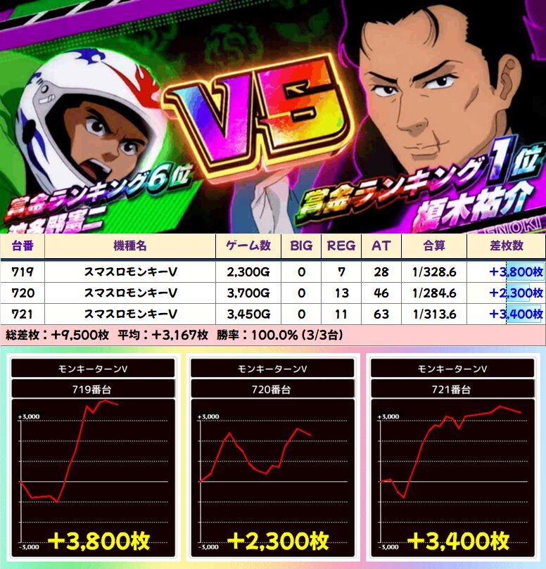 【5台並び】モンキーターンV(719-721番台)➡平均 +3167枚