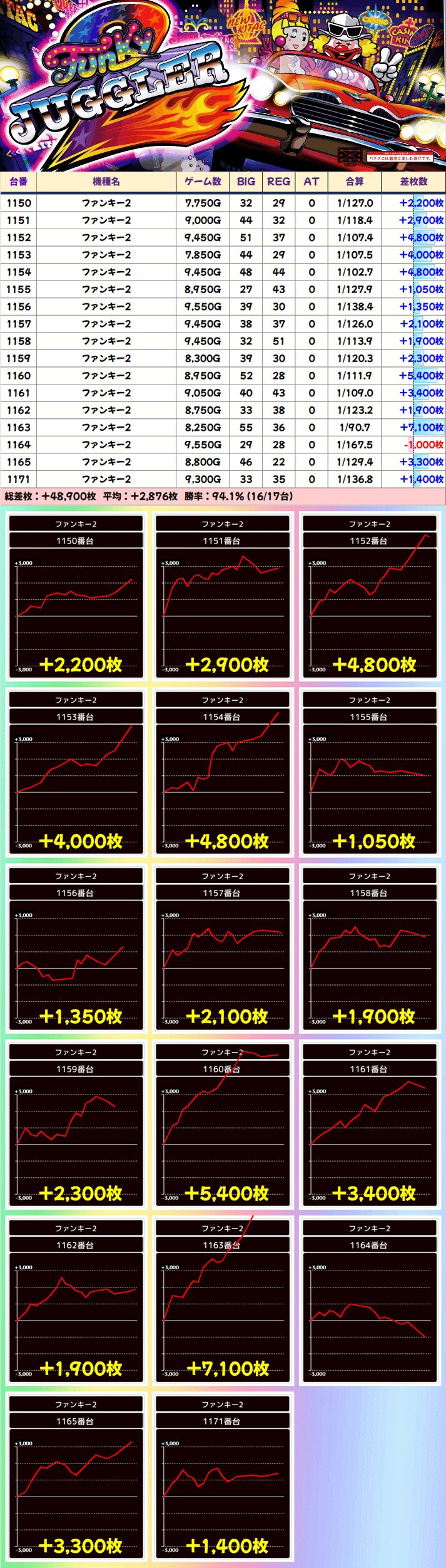 3Fファンキー2(16/17台+) ➡平均 +2,876枚
