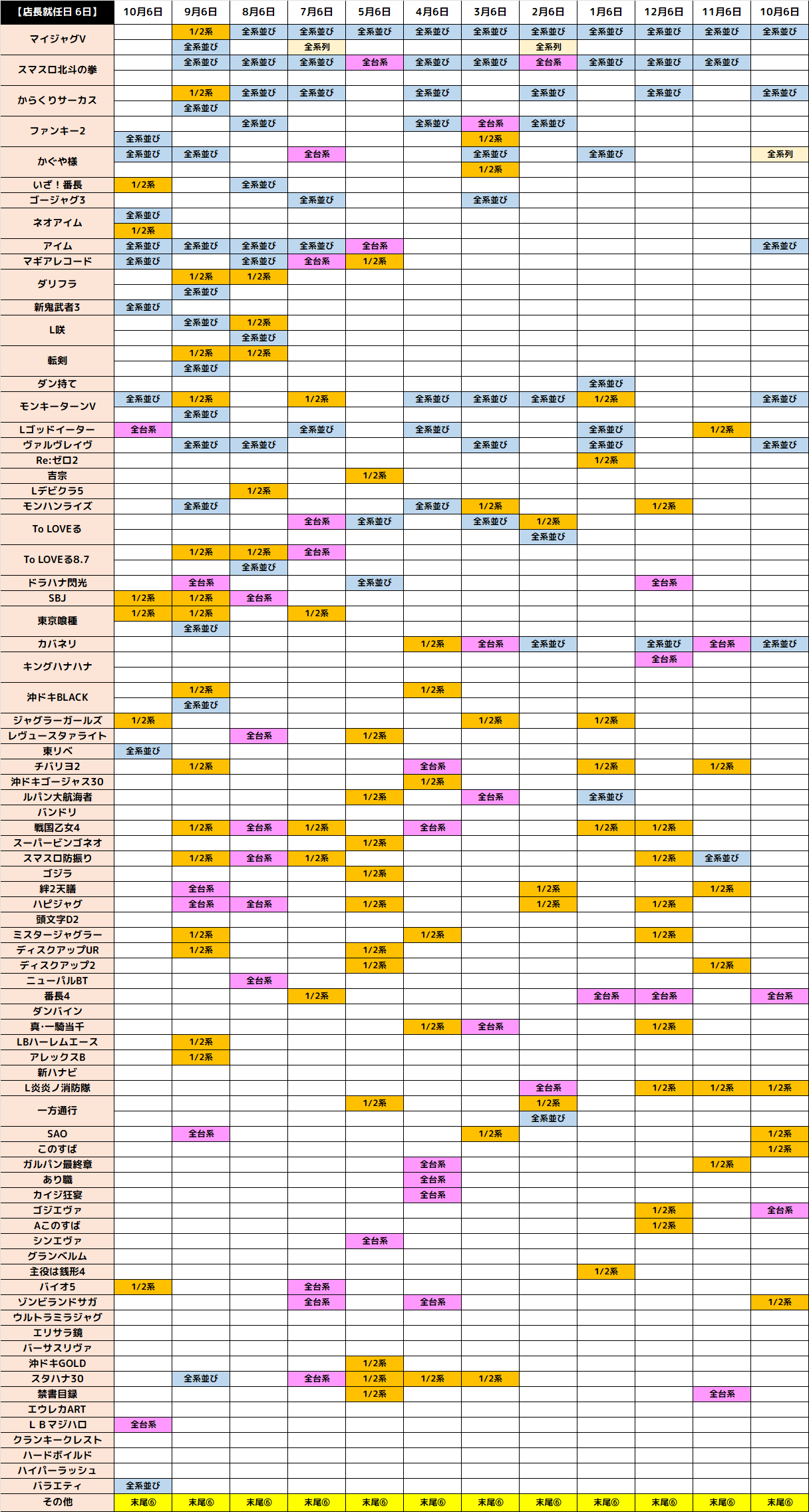 この日は全台系濃厚や末尾、並びの仕掛けなど王道の仕掛けが多数出現する傾向があり、また⑥のつく日でもあるので、末尾⑥の仕掛けが恒例。今回も末尾⑥には仕掛けが出現するでしょう!