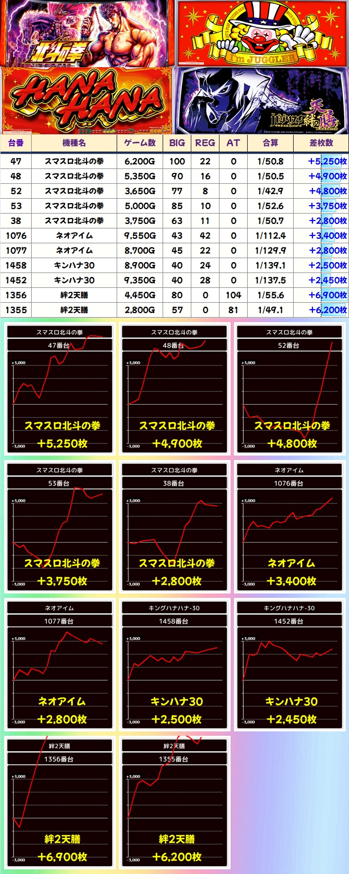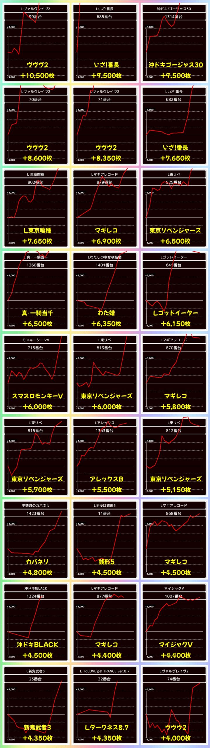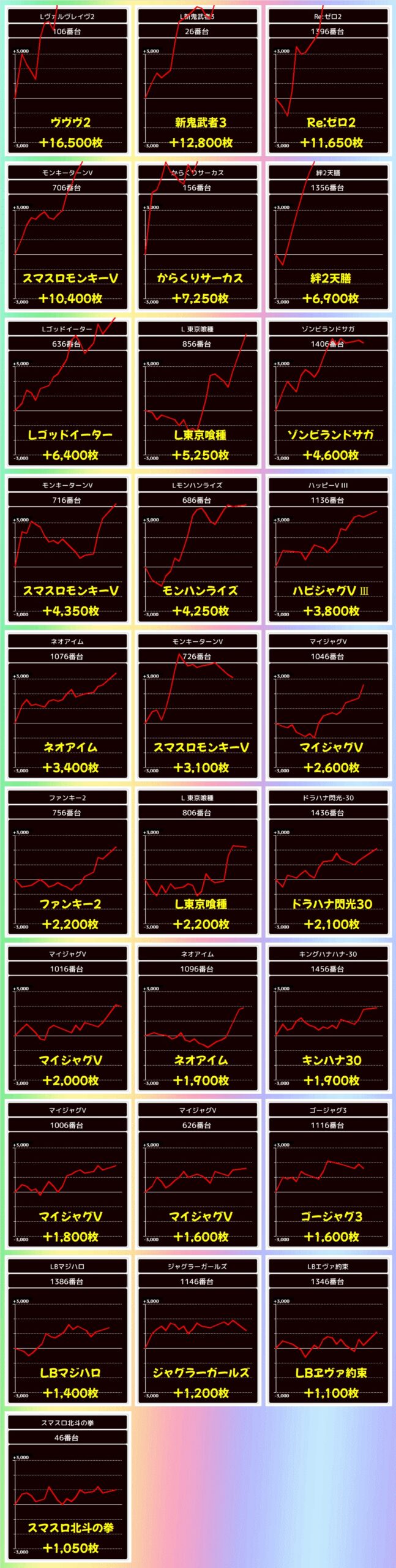 +4200枚を筆頭に半数の4台が+3000枚以上と素晴らしい結果に!