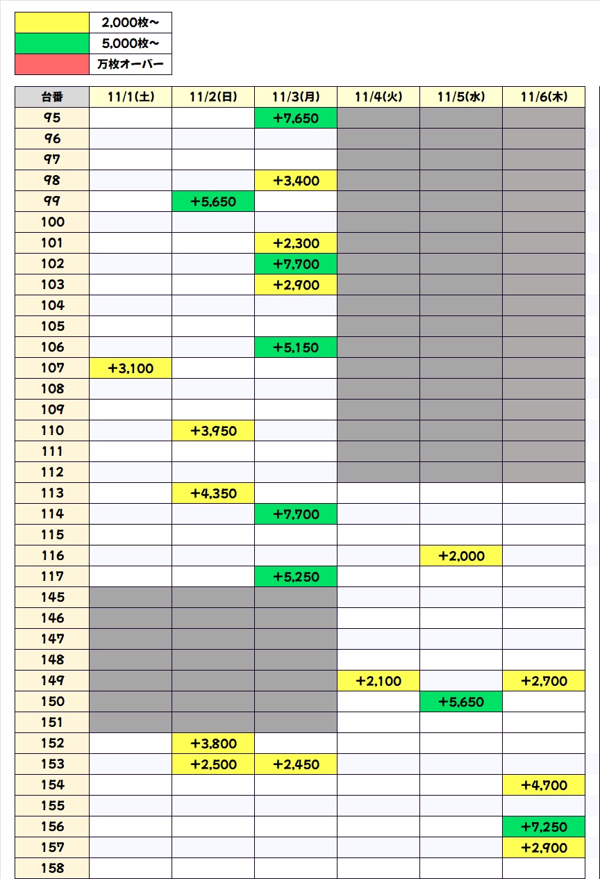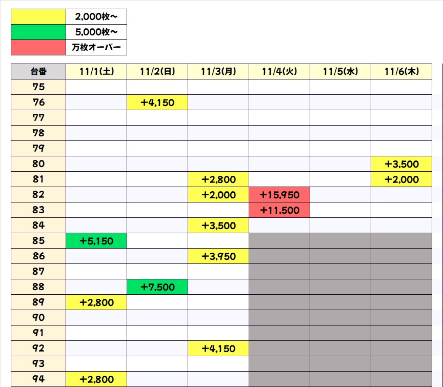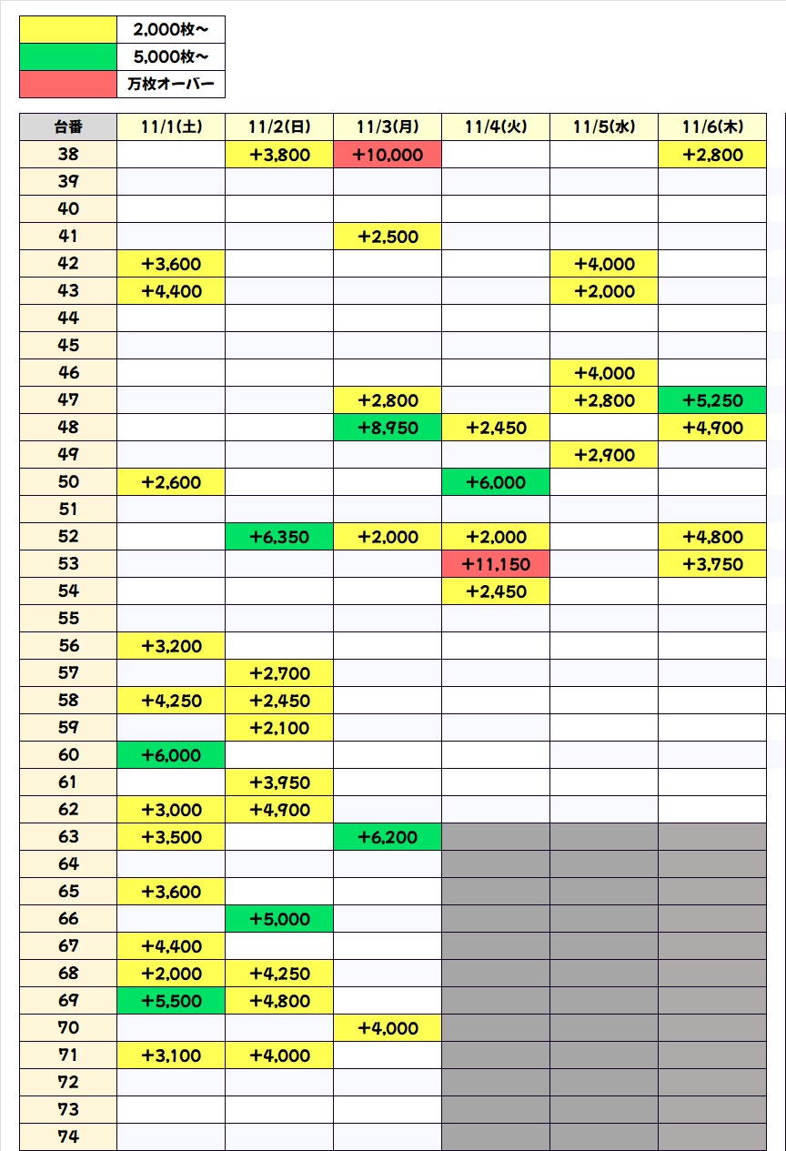 +4200枚を筆頭に半数の4台が+3000枚以上と素晴らしい結果に!
