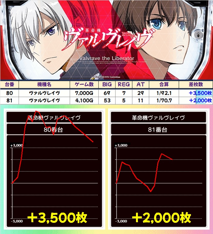 「ヴァルヴレイヴ」には+3500枚、+2000枚と複数の優秀台あり!