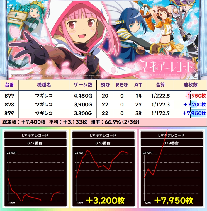 【3台並び】マギレコ(877-879番台)→平均+3,133枚
