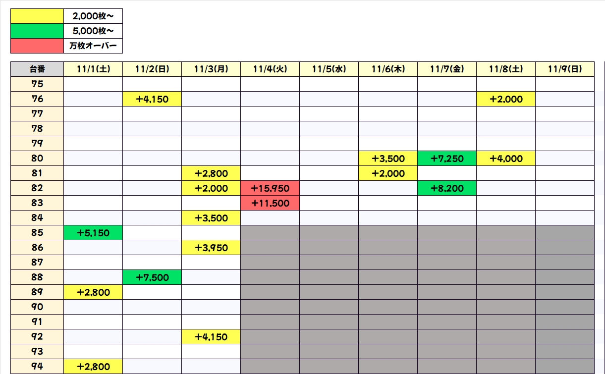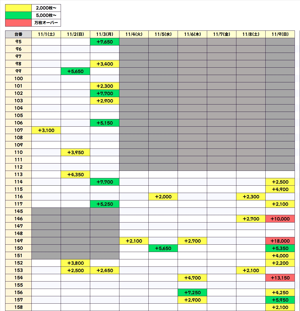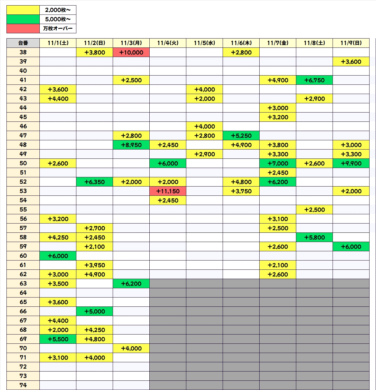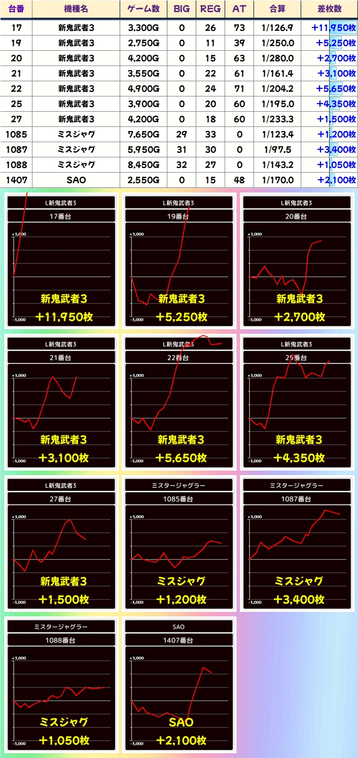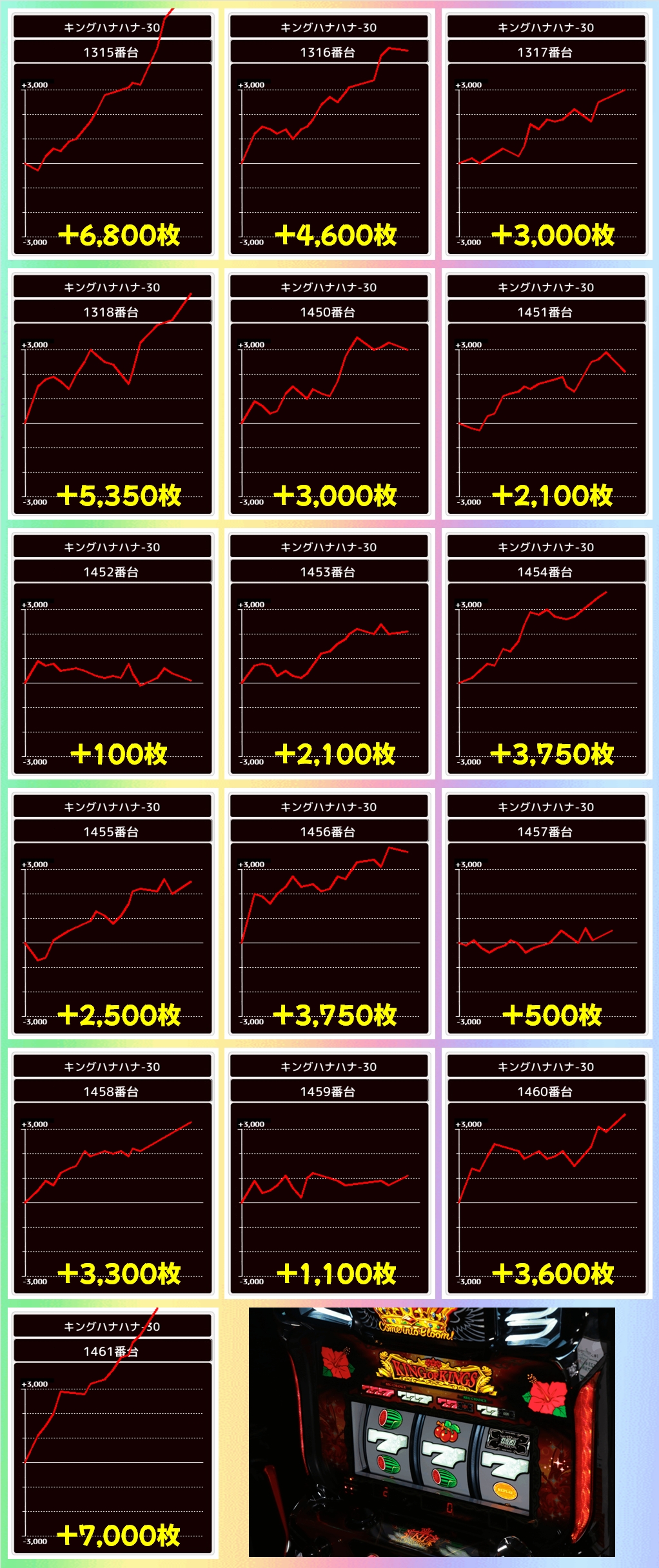 前並び平均1000枚以上のプラスで、半数が平均3000枚クラスと内容も抜群に良し!