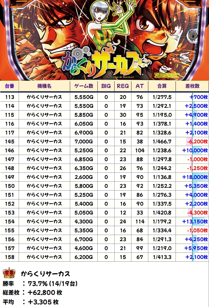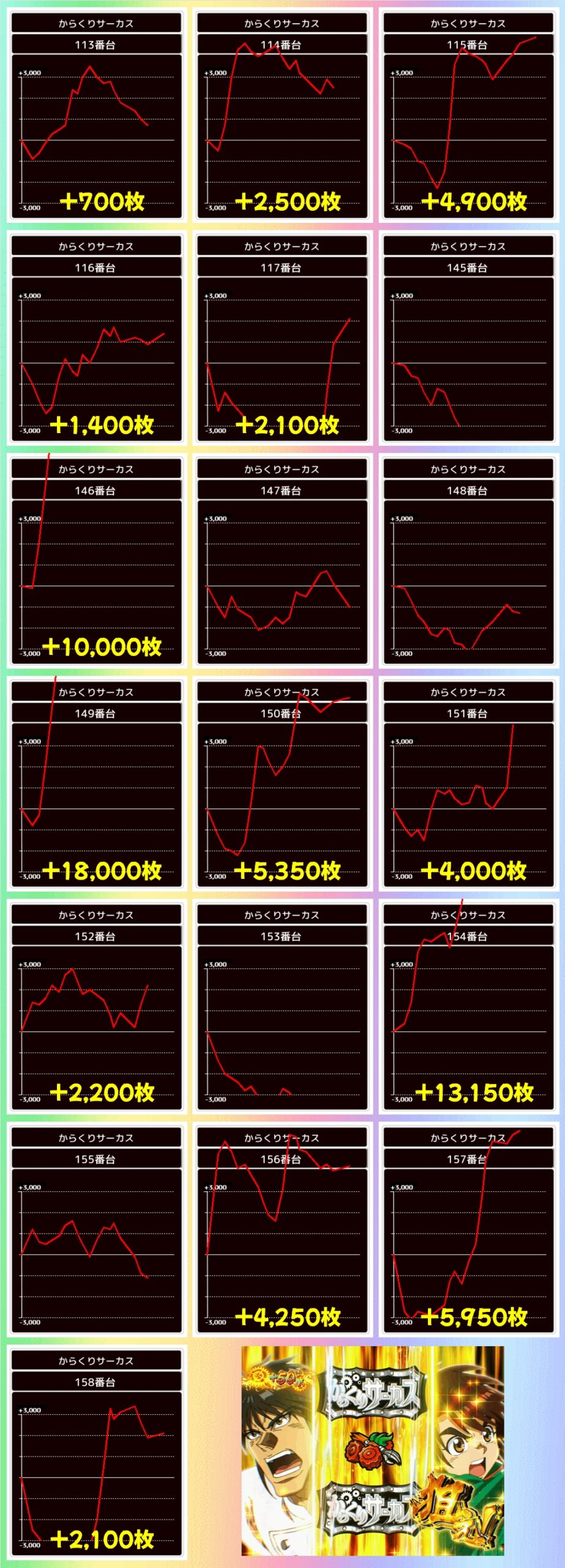 からくりサーカスは全系濃厚機種だったので、優秀台も大量!
