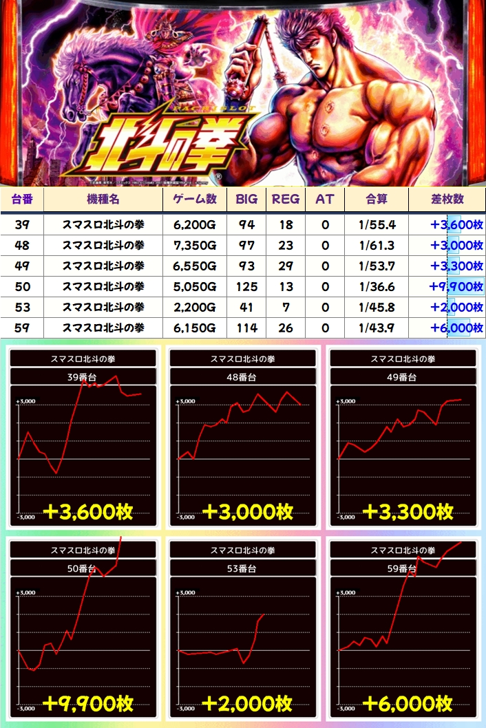 スマスロ北斗の拳には3台並び以外にも9000枚超などの優秀台が出現!