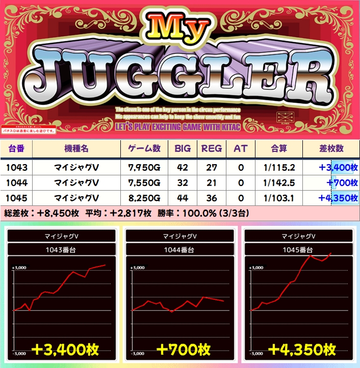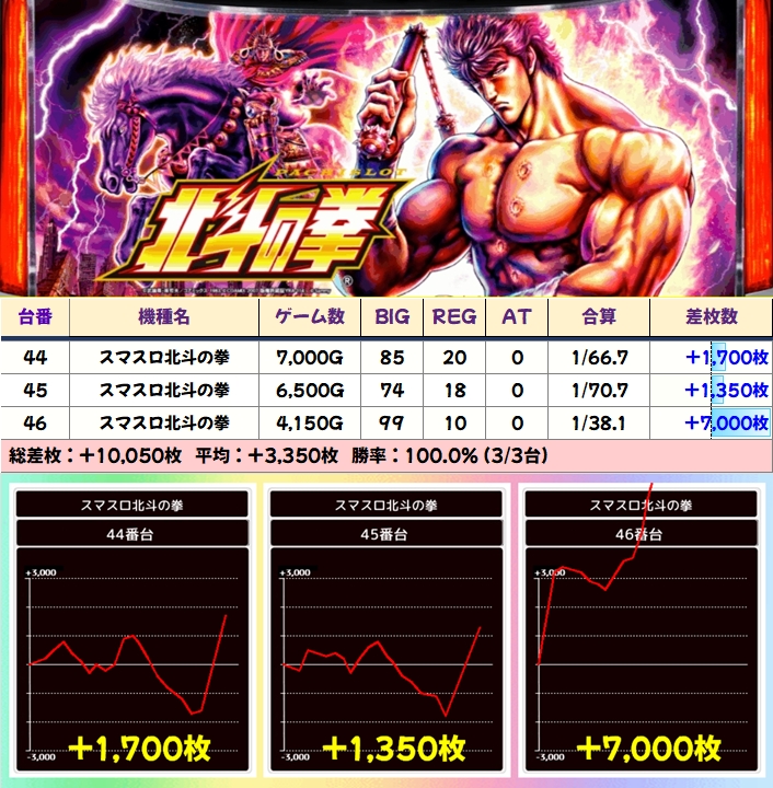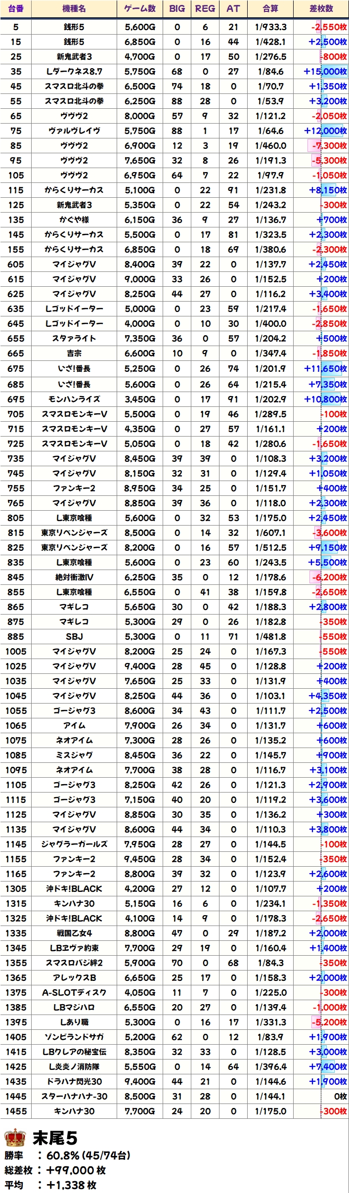 今回も末尾や王道仕掛けが多数あり、総差枚は12万枚超の優秀結果でした
