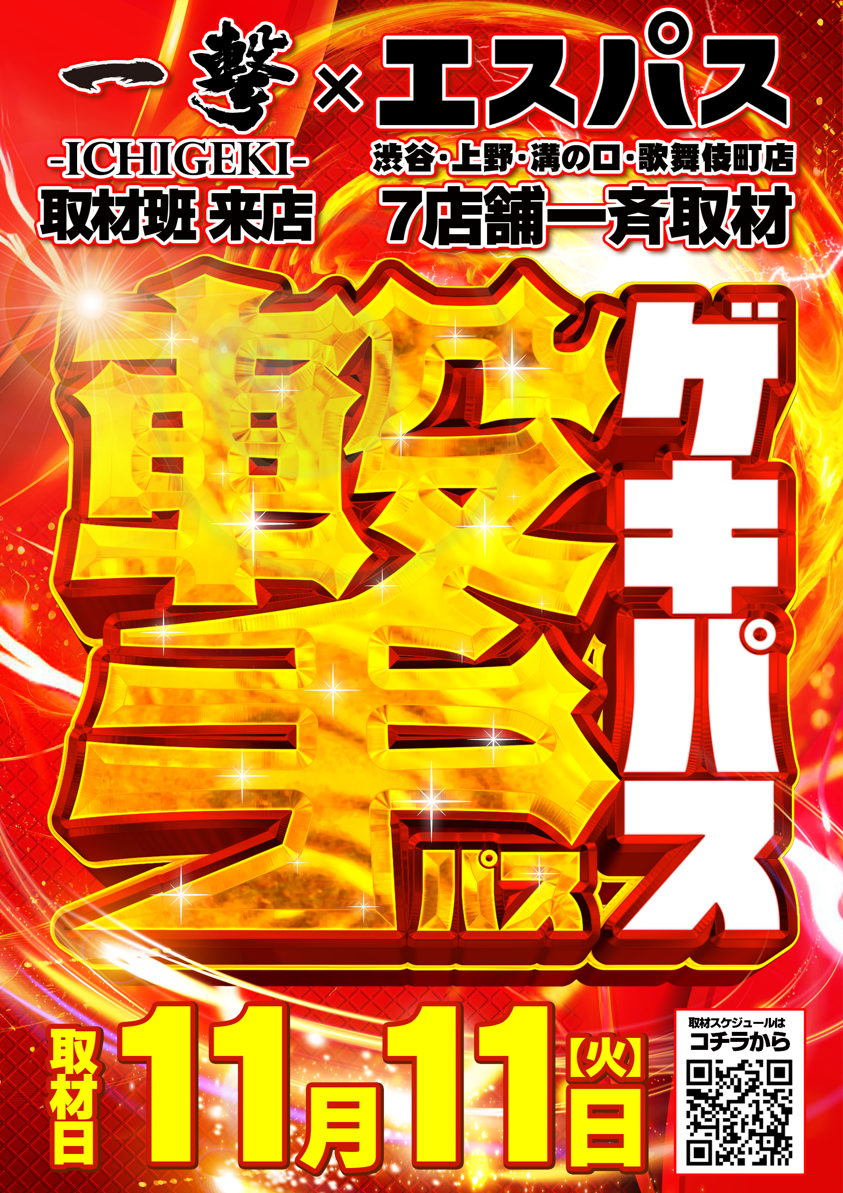 11/11は強ゾロ目のほかにも撃パスが開催!撃パスは攻略サイトである一撃とエスパス7店舗が合同で行う一斉取材で、いつも以上に期待できる状況でした。