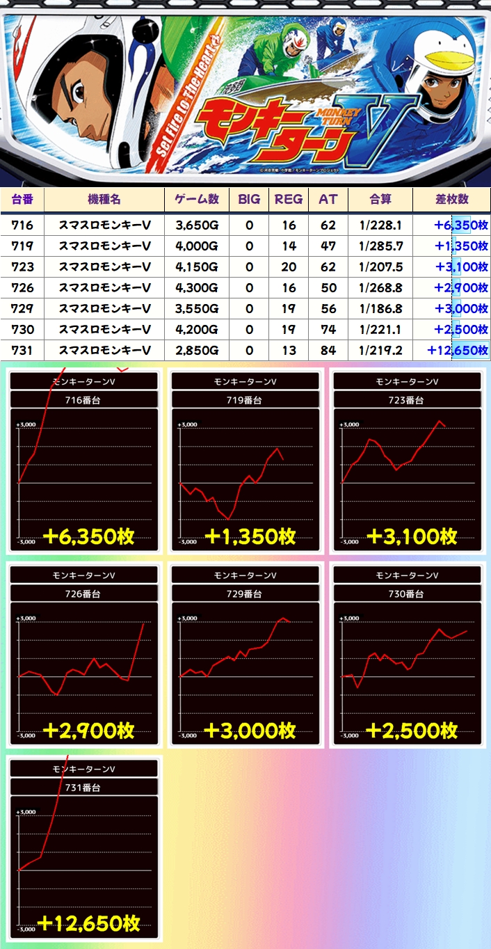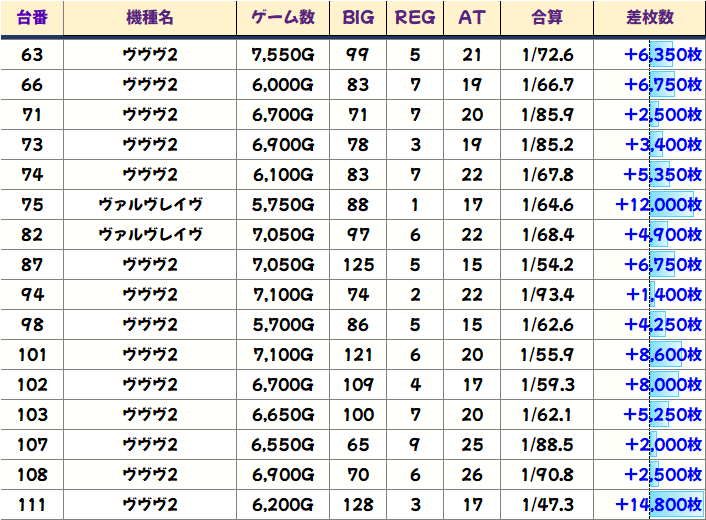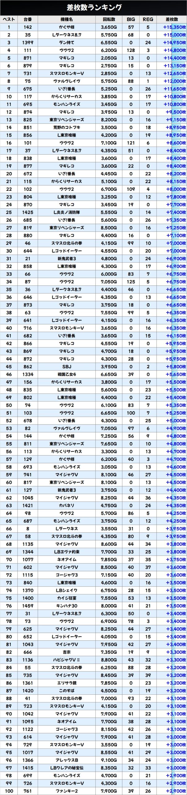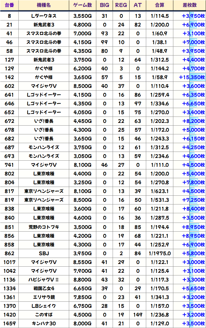 それぞれの機種の優秀台をピックアップしますので、データをチェックしてみましょう!