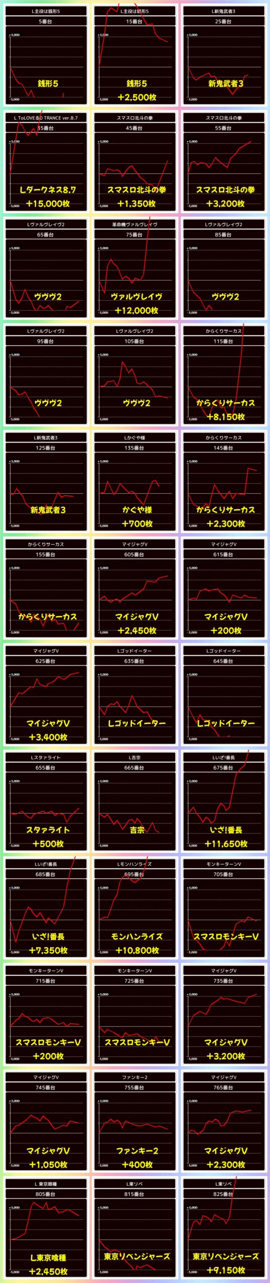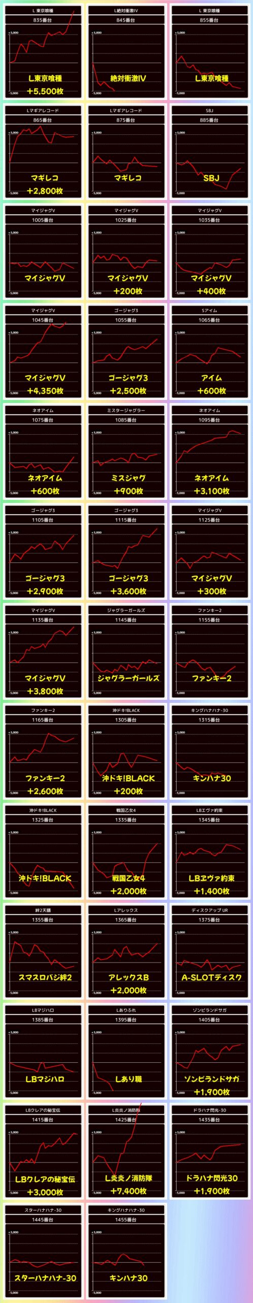 全並び平均1000枚超で平均3000枚超も複数あることから、並びはかなり高品質台が仕掛けられていたのでしょう。
