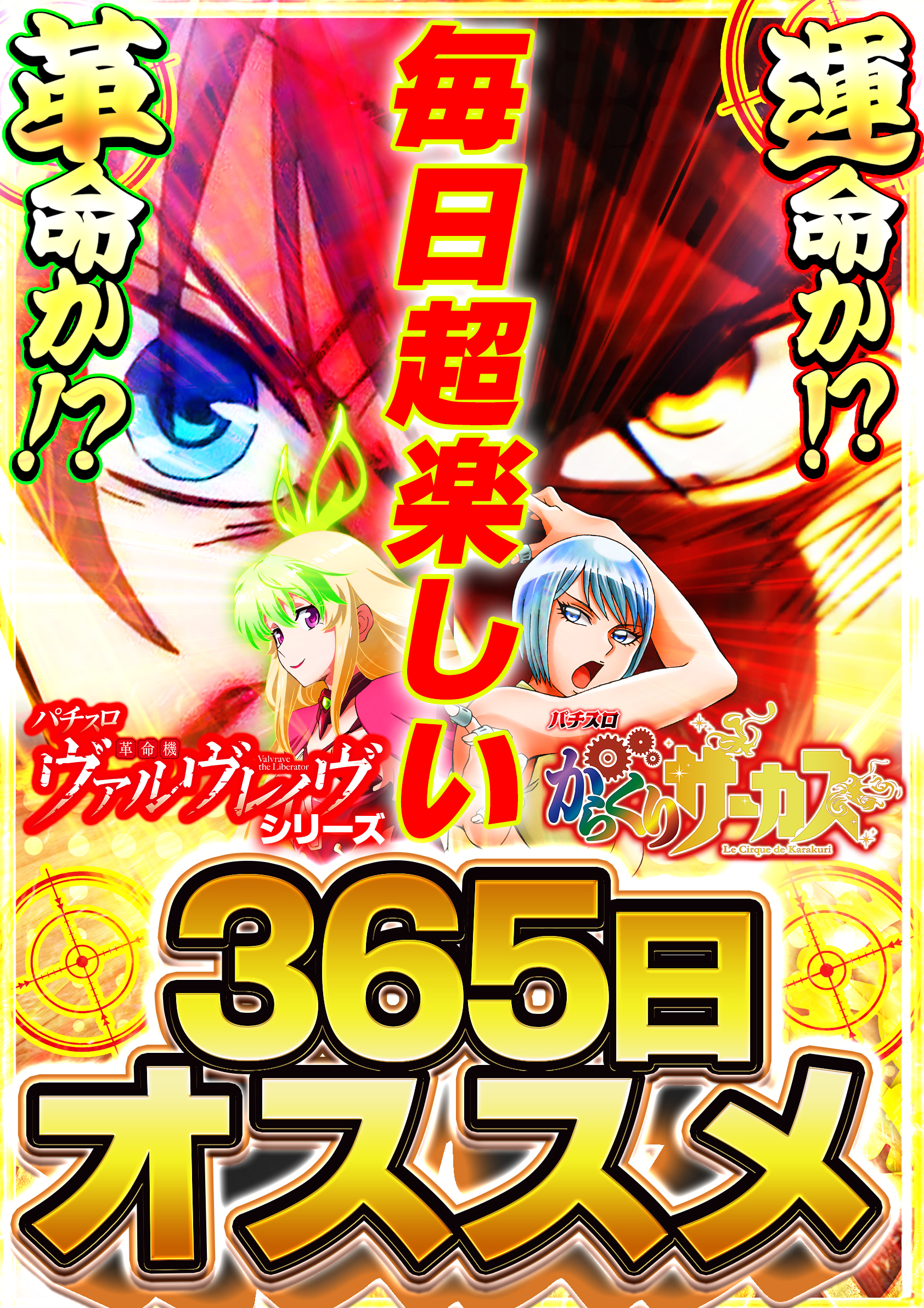 中旬の11日からは、「からくりサーカス」「ヴァルヴレイヴ2」「初代ヴァルヴレイヴ」の3機種が毎日オススメ機種となっています。