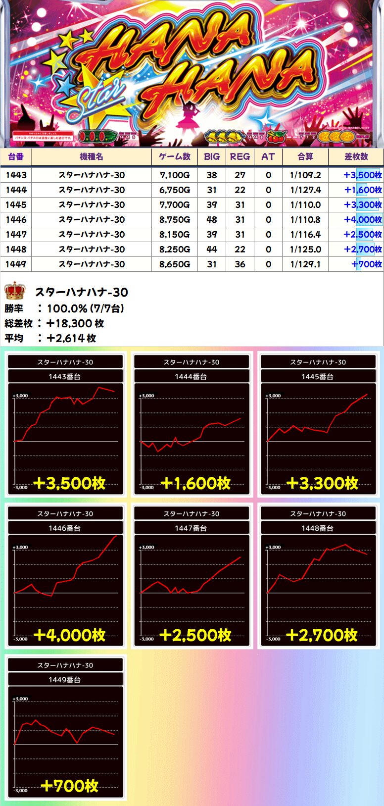 スターハナハナ-30 (7/7台+) ➡平均 +2,614枚