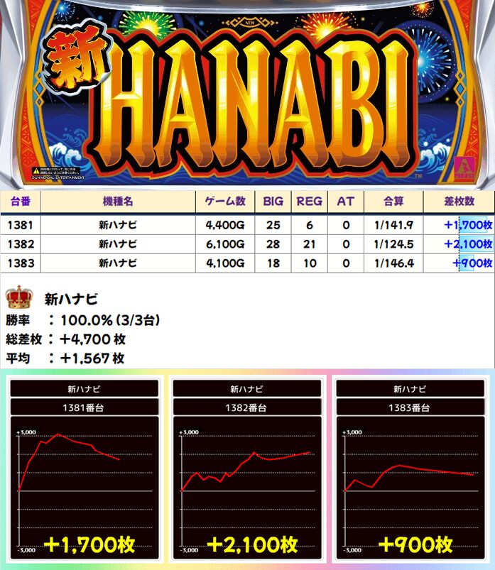 新ハナビ (3/3台+) ➡平均 +1,567枚