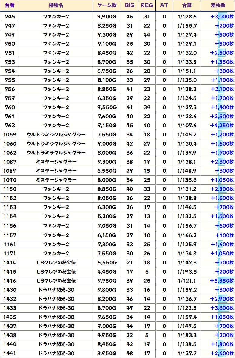■ファンキー2 (21/36台+) ➡平均 +475枚