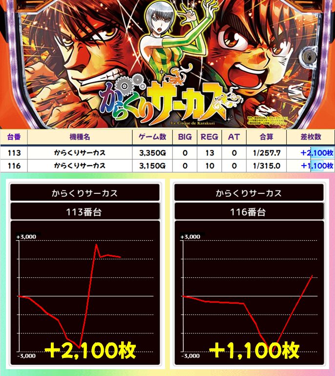 からくりサーカスの優秀台は2台!本日は5のつく日だったので控えめな結果に?