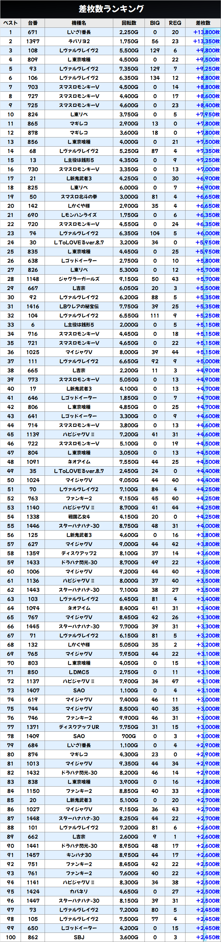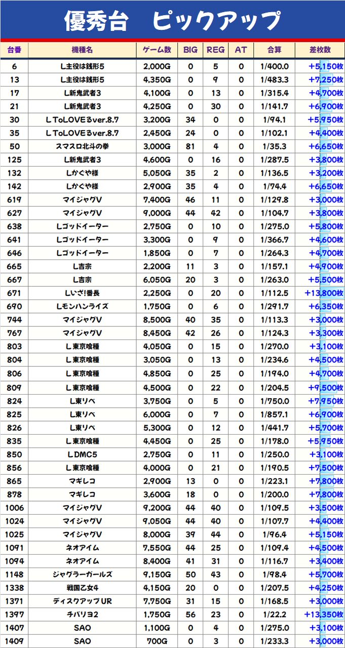各機種の優秀台をピックアップしますのでデータを確認してみましょう!