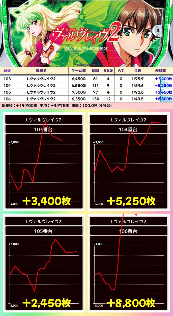 ヴヴヴ2には並び仕掛けアリ!その他優秀台が大量に確認できました!本日は初代が控えめな結果ですが、まだまだ初代も扱いよし!