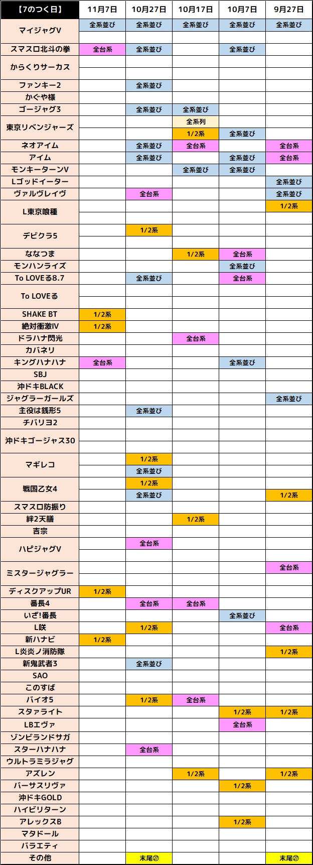 今後も7の日に7纏わりの仕掛けが用意されるかもしれないため、7台列・7台並びは意識しておいたほうが良いかもしれませんね。