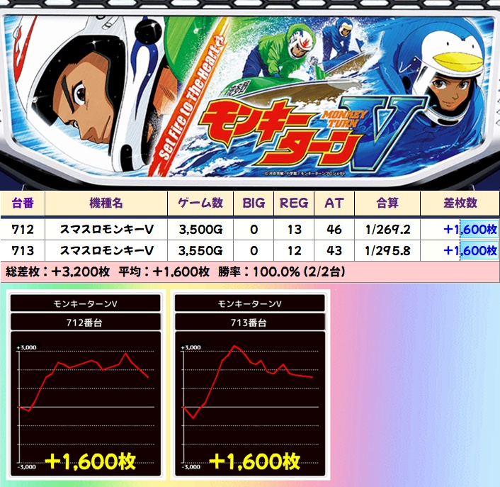 【2台並び】モンキーターンV(712-713番台)平均1600枚