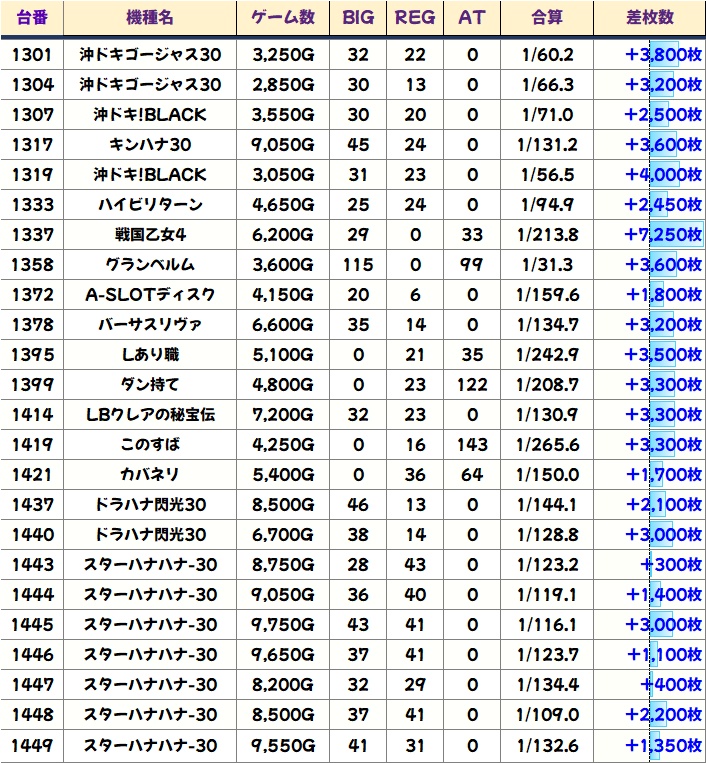 それぞれの機種の優秀台をピックアップしますので、データをチェックしてみましょう!
