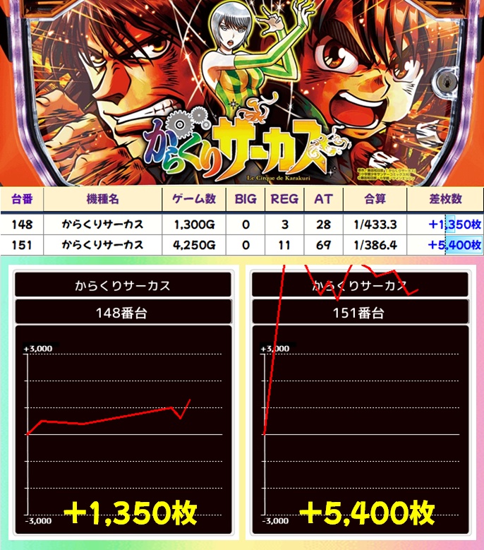 今回は下記の機種から1/2系濃厚の仕掛けを確認。いずれの機種もトータルでもしっかりプラスとなっており、大量出玉も出現しておりました。