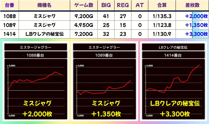今回も各機種の優秀台(+1000枚超)をピックアップ!