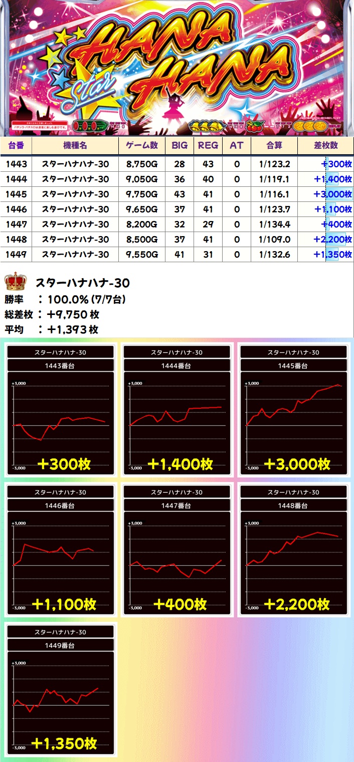 スタハナ30(7/7台+) ➡平均 +1,393枚