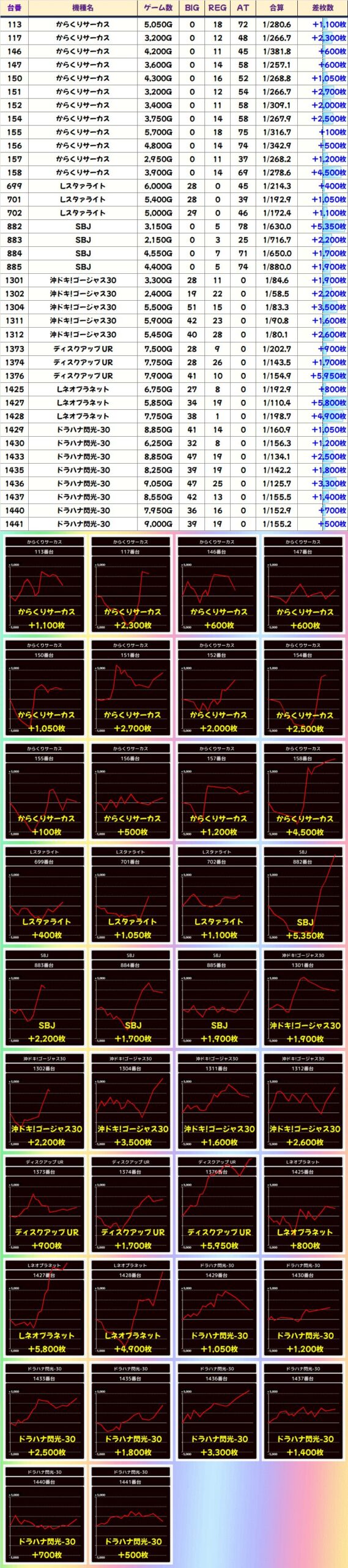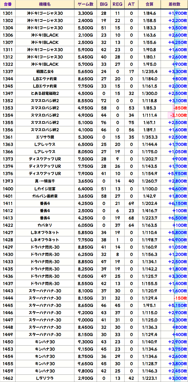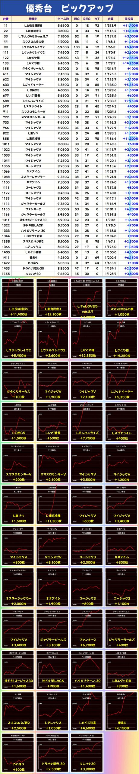 今回も各機種の優秀台(+1000枚超)をピックアップ!