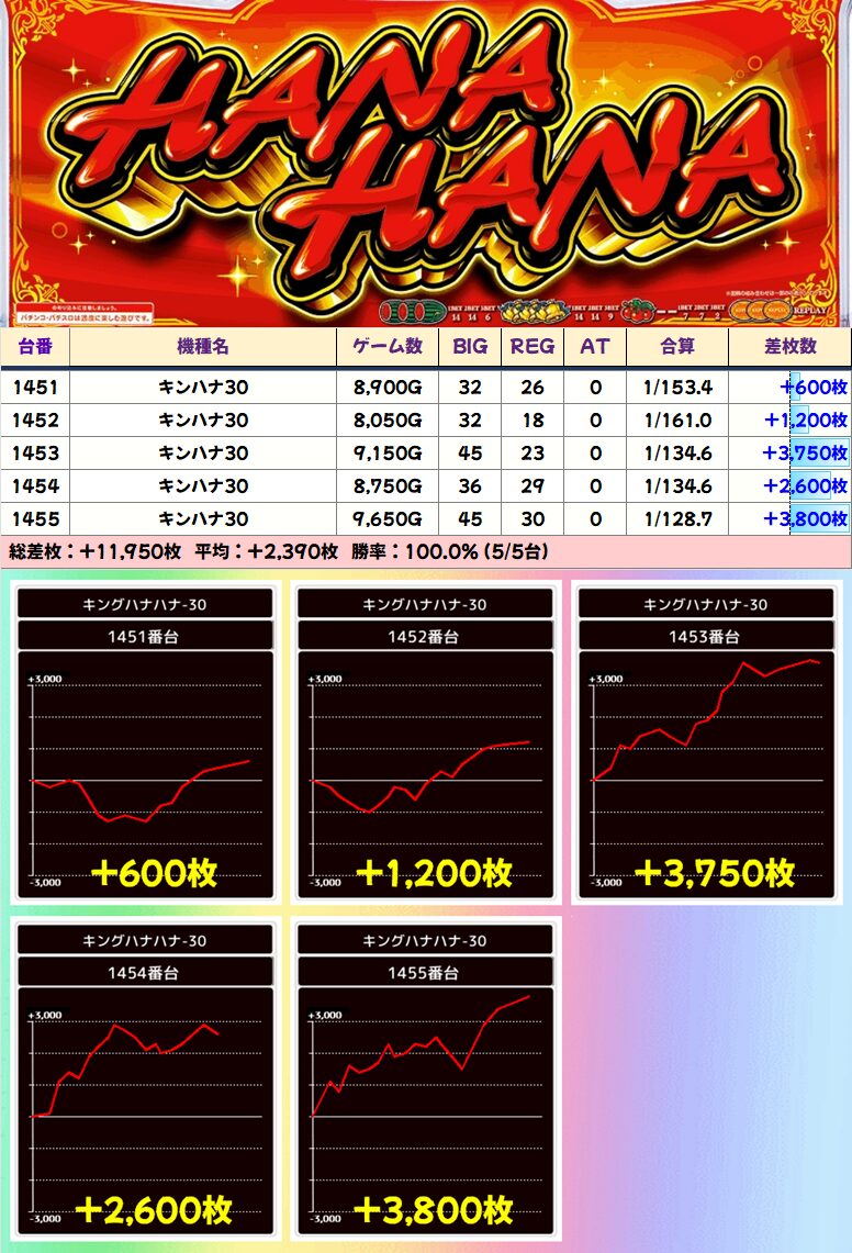 【5台並び】キンハナ(1451-1455番台)→平均+2,390枚