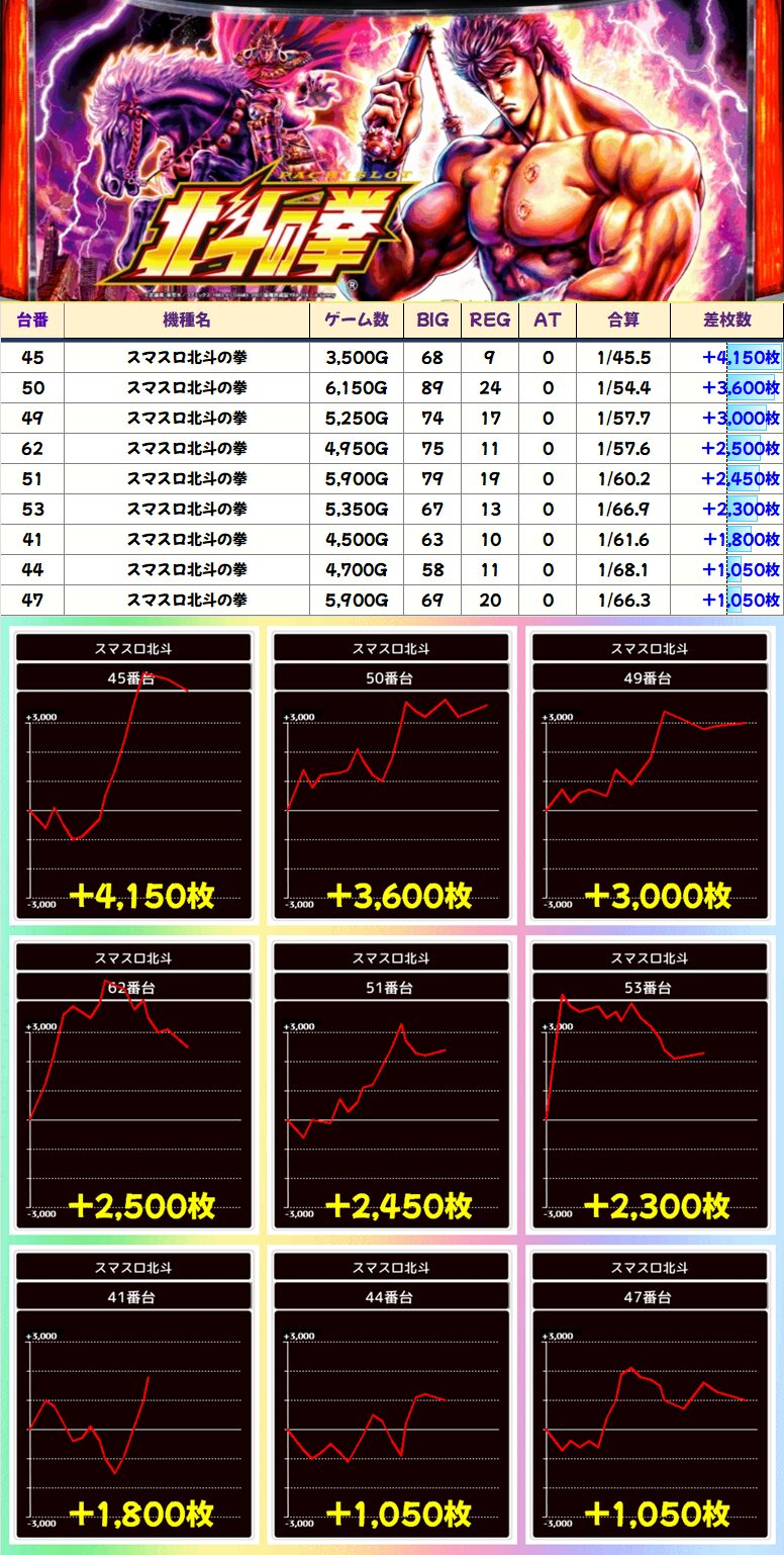 【3台並び】スマスロ北斗(49-51番台)→平均+3,017枚