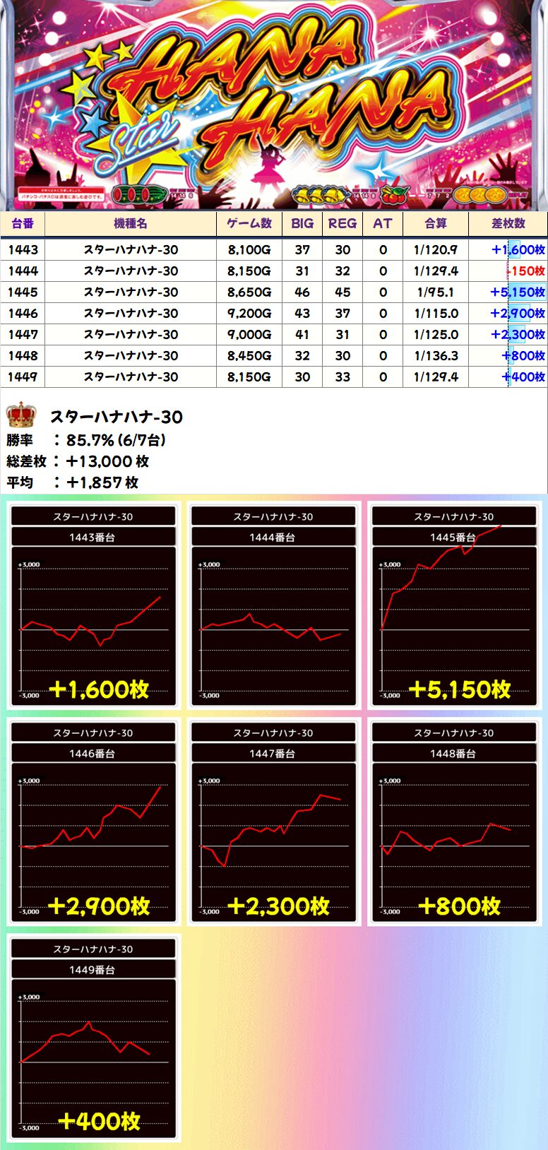 スターハナハナ-30 (6/7台+) ➡平均 +1,857枚