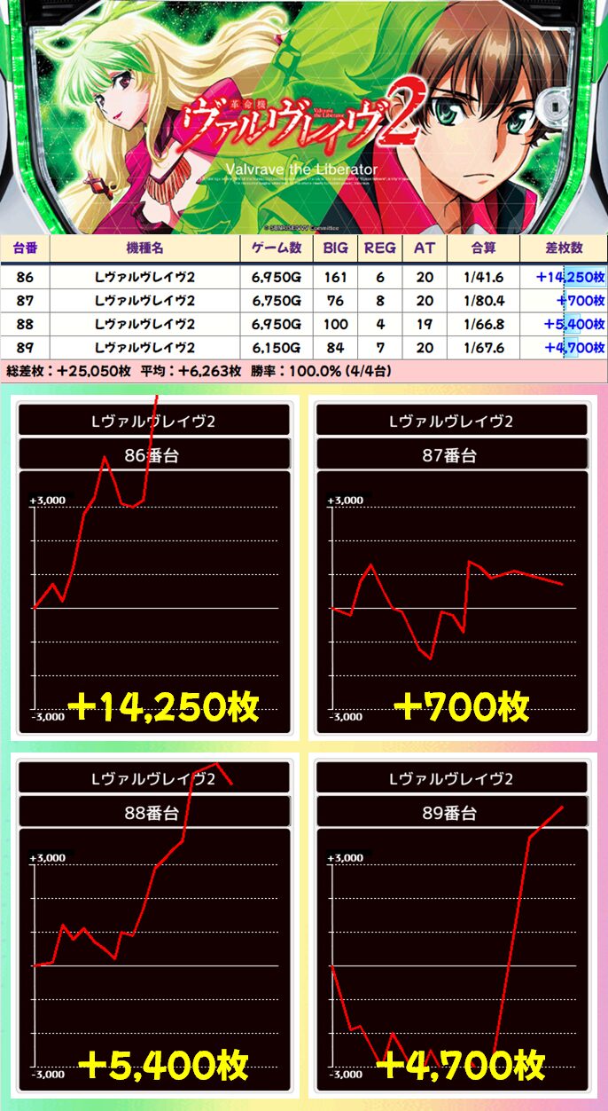【4台並び】ヴヴヴ2(86-89番台)→平均+6,263枚