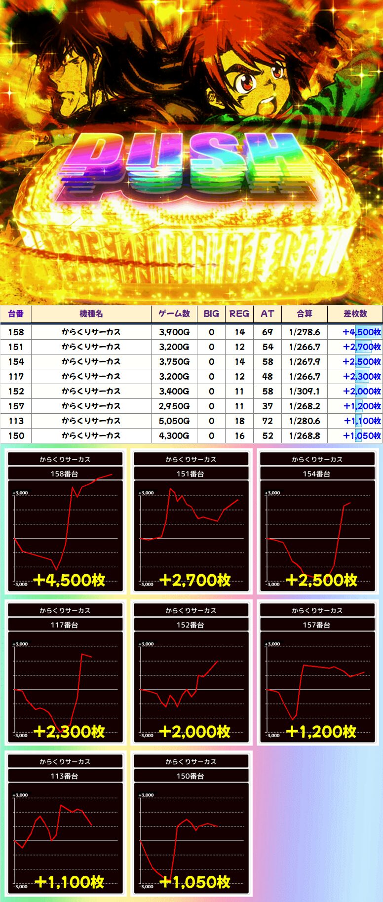 からくりサーカスは1/2以上の高配分機種で、優秀台が多数アリ!
