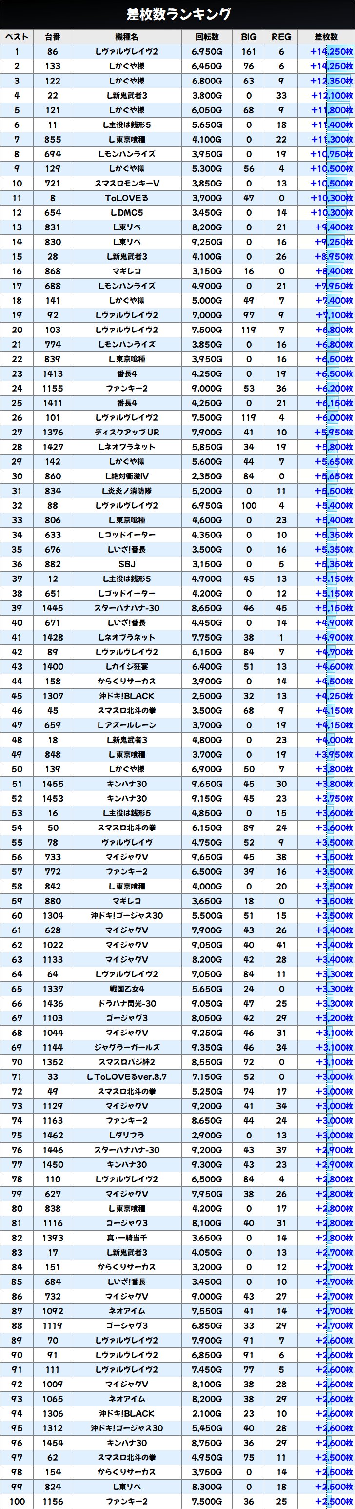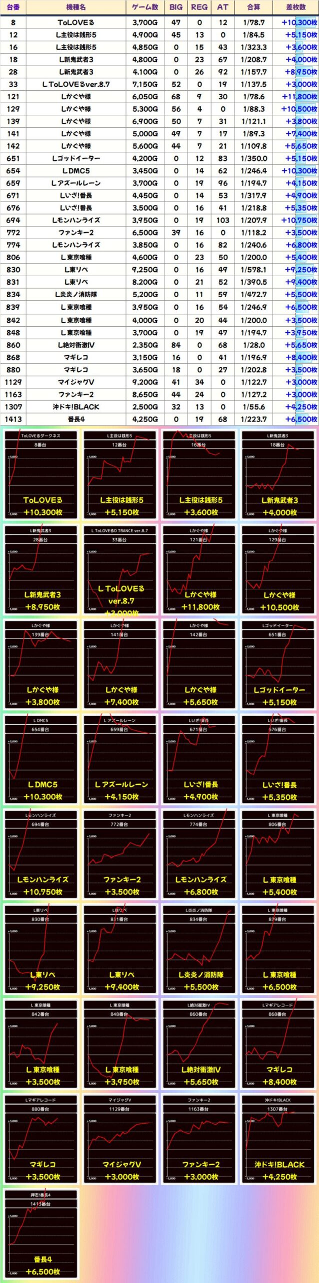 各機種の優秀台をピックアップしますので、データを確認してみましょう!