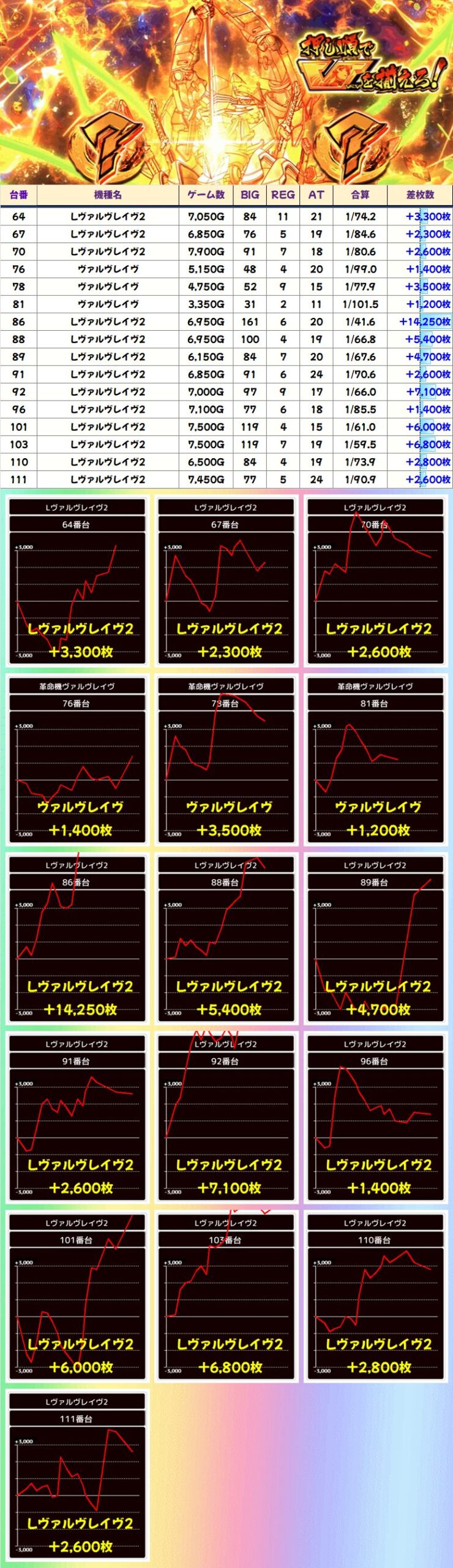 ヴァルヴレイヴ2には並び仕掛けが2本アリ!それ以外にも単品優秀台が多数確認できています!