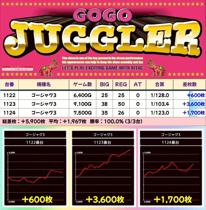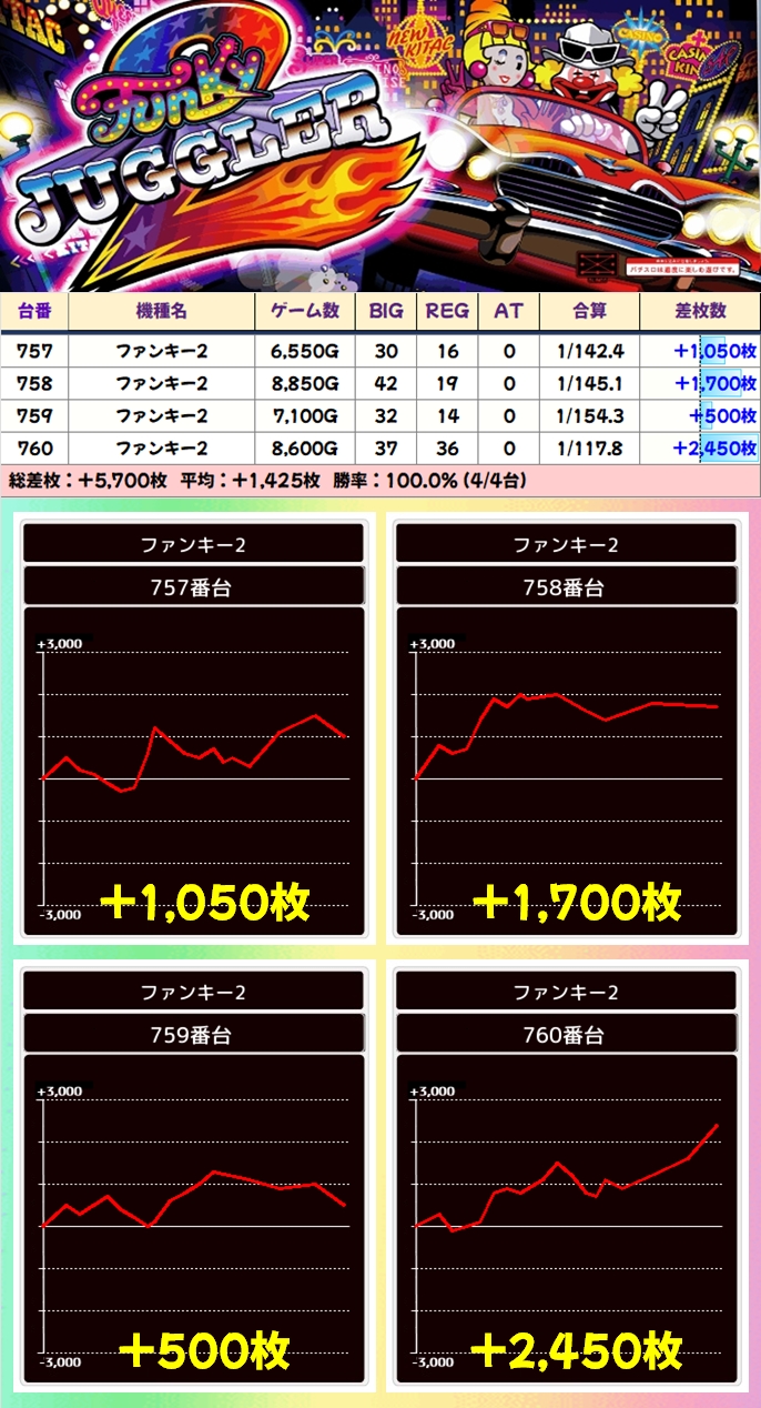 不発台はあるものの、平均+1100枚オーバーと大幅プラスとなっていました!