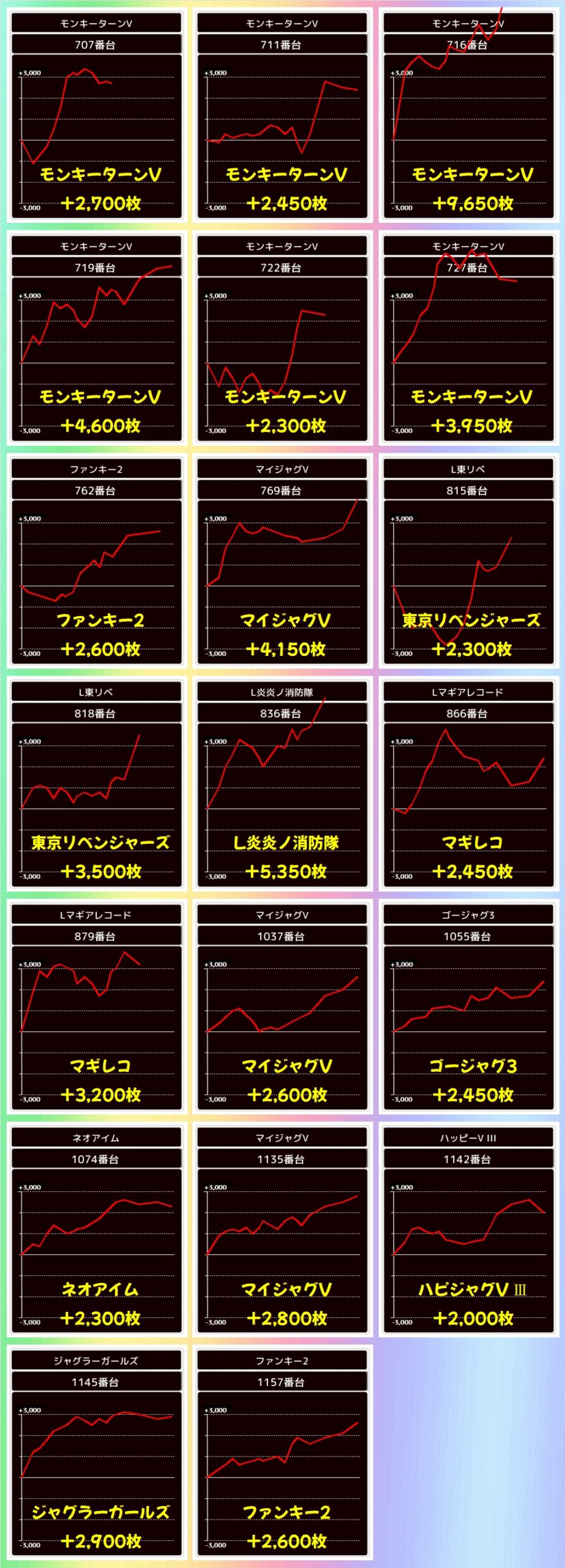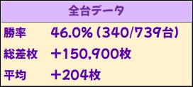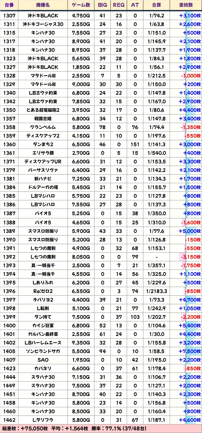 出玉も優秀な結果になっており、総差枚+2.7万枚、平均+1000枚超と記録していました。