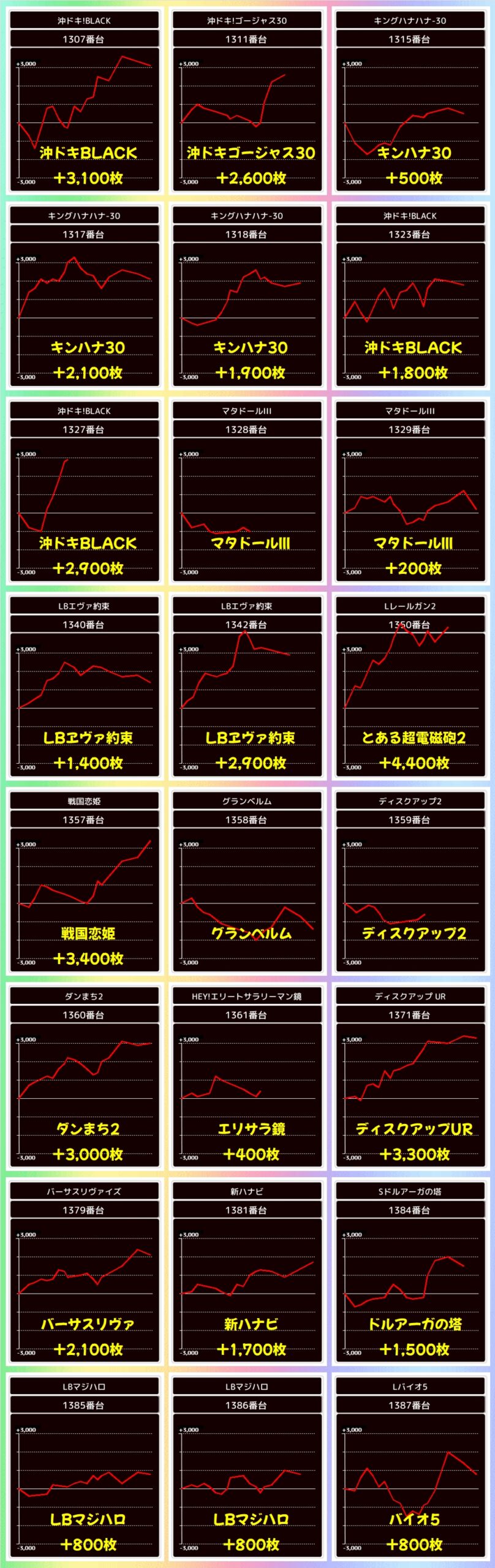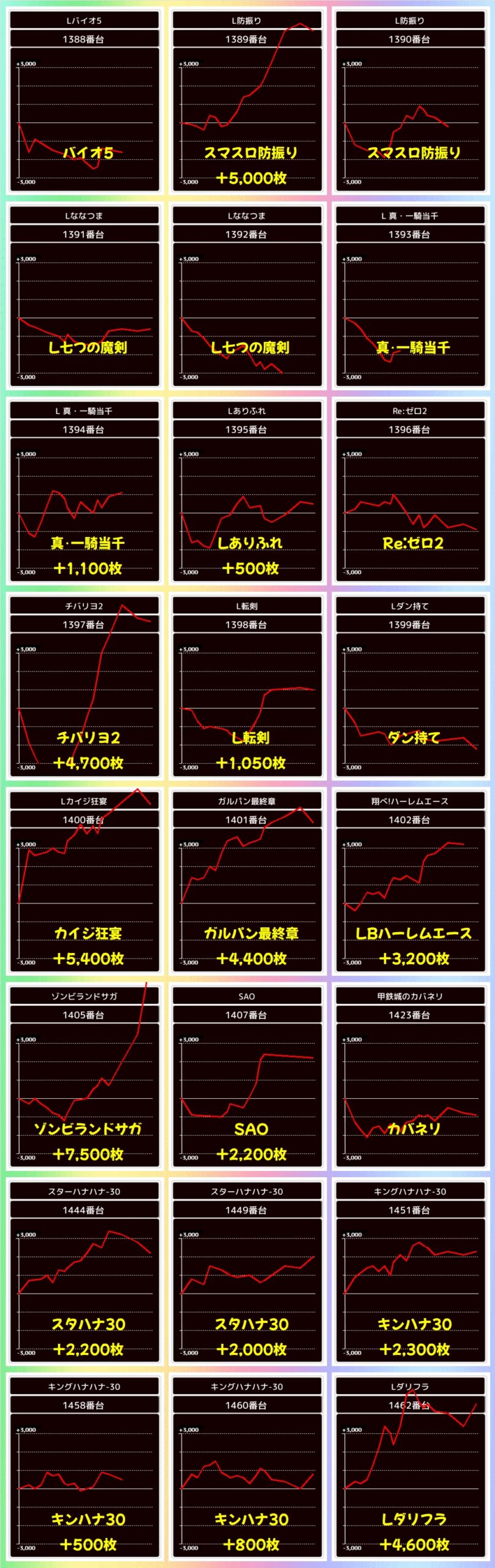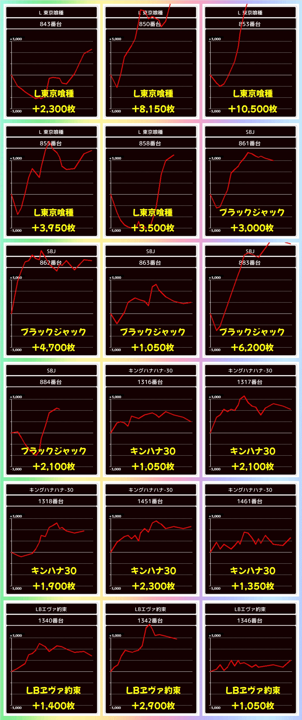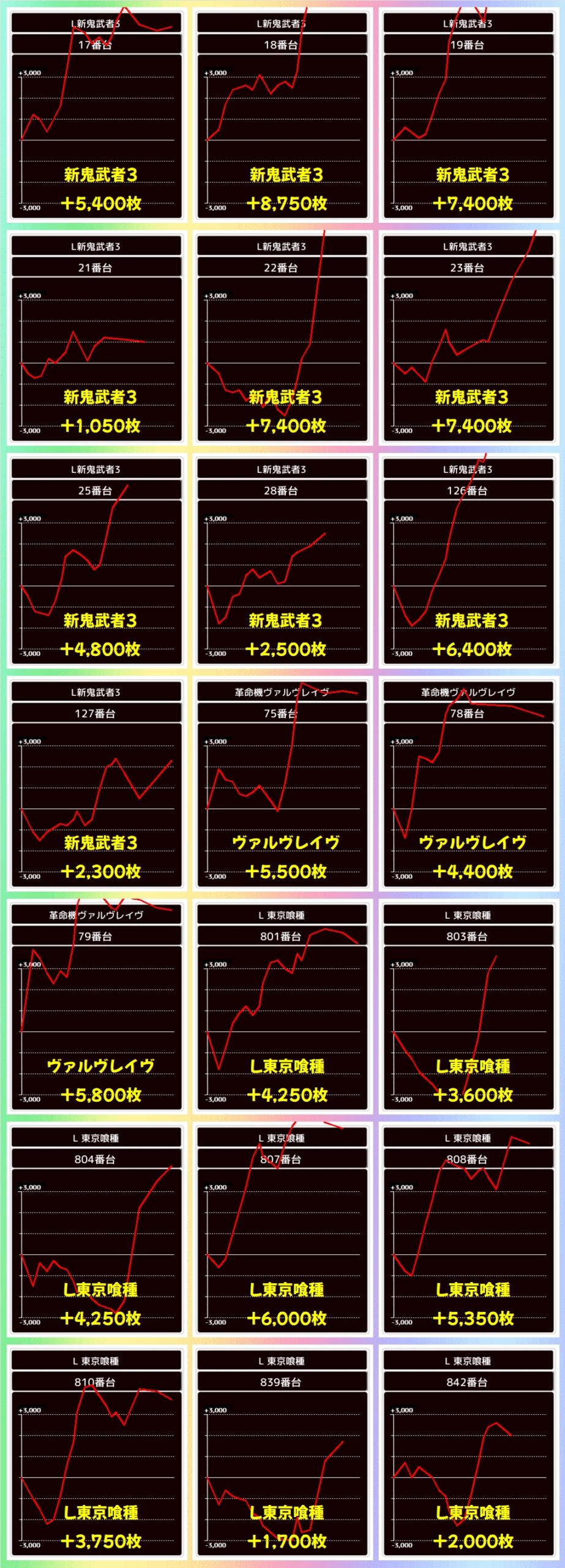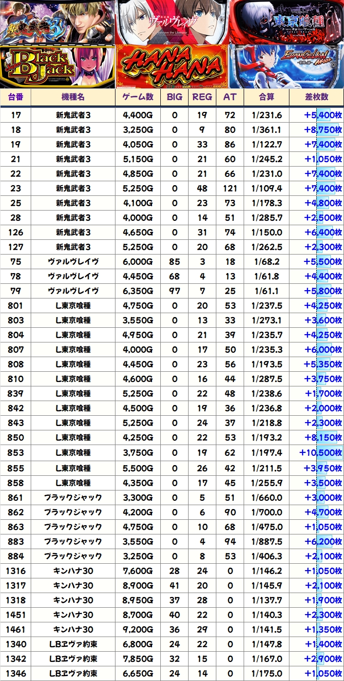 また、増台された東京喰種からも+5000枚以上の台を複数確認でき、万枚オーバー台も飛び出していました!