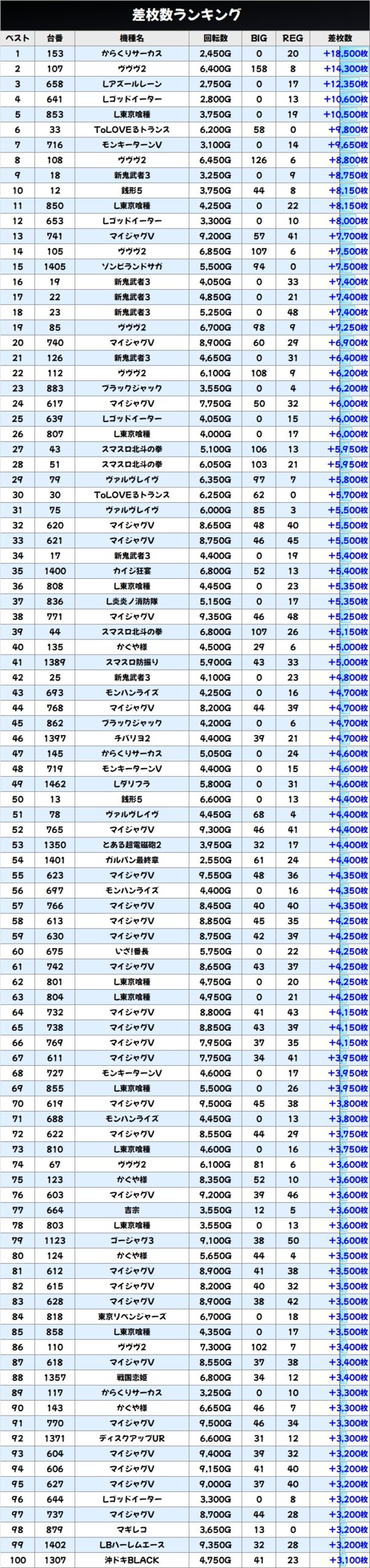 差枚数ランキング&島図をチェック!