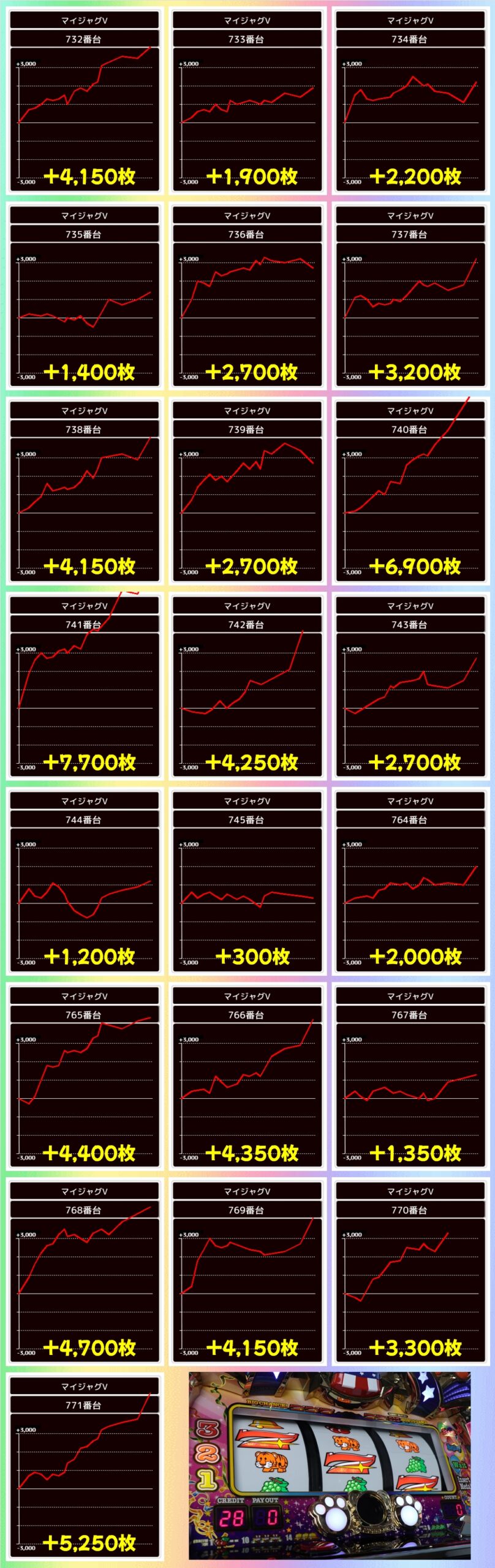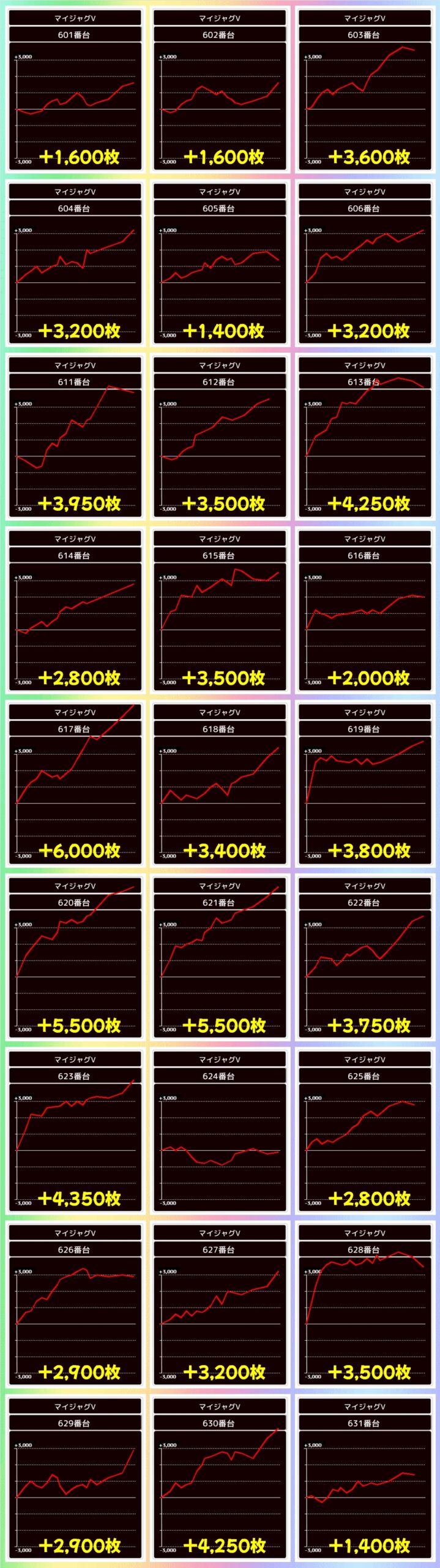 この日はかぶぱポストにヒントを確認できた2Fのマイジャグが全台系濃厚の結果になっており、総差枚+16万枚オーバーと圧倒的出玉を記録!