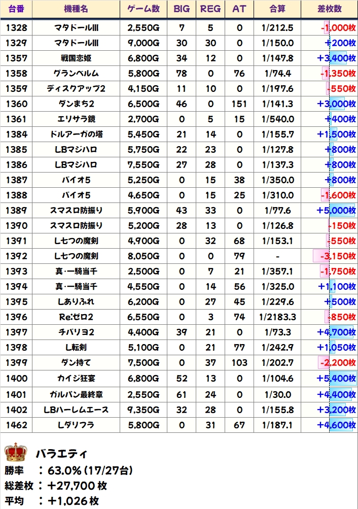 【全台系濃厚】バラエティ(17/27台+)→平均+1,026枚