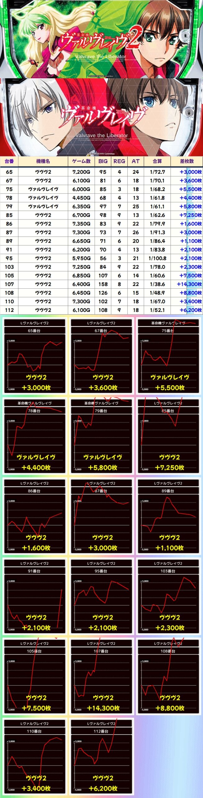 ■ヴァルヴレイヴ(5/10台+)→平均+880枚