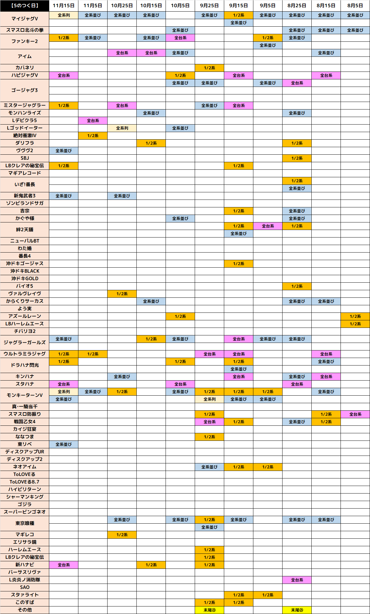 今回は下記の4機種から1/2系濃厚の仕掛けを確認できました!