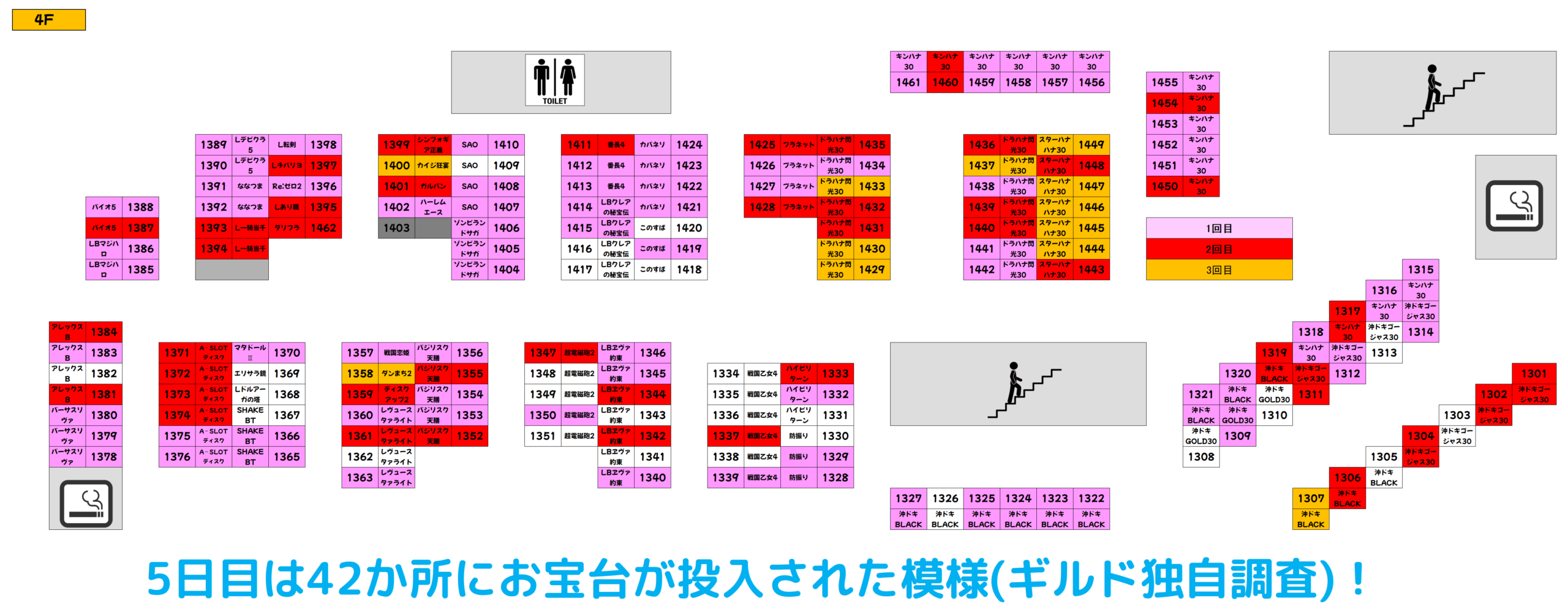 激熱7days5日目は対象フロアの4Fから42台のお宝台を確認!