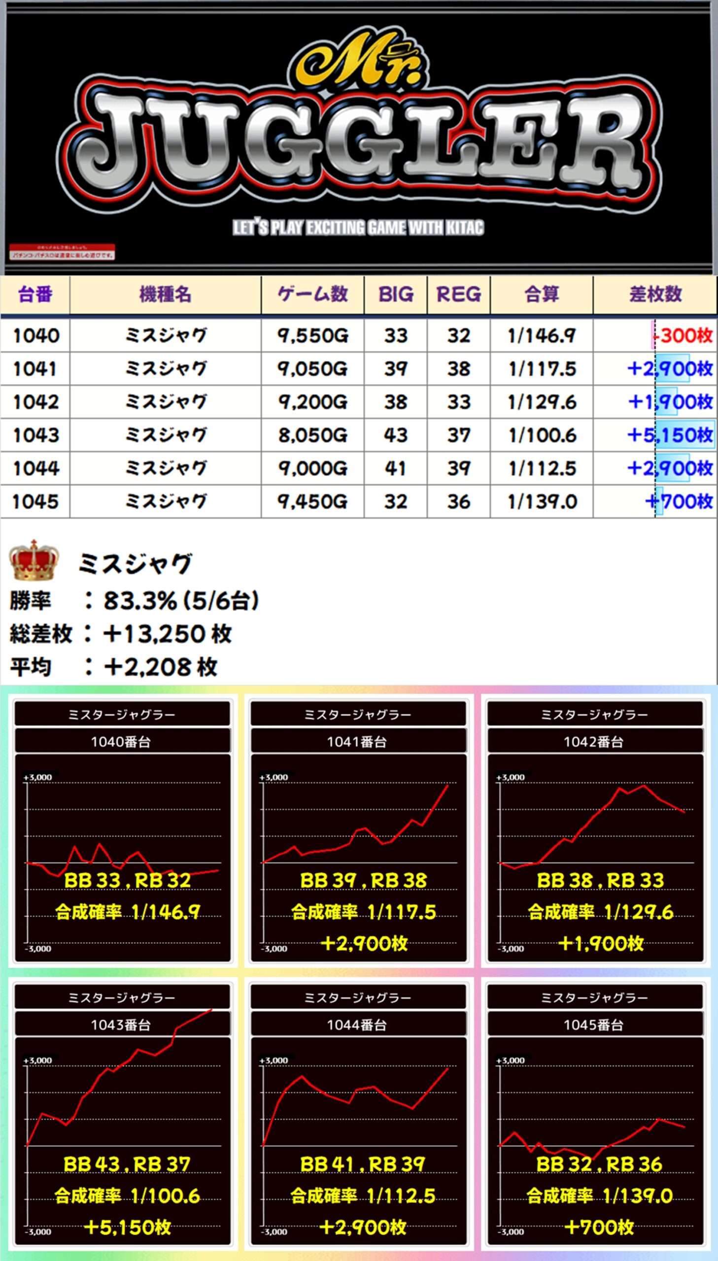 【全台系濃厚】ミスジャグ(5/6台+)→平均+2,208枚