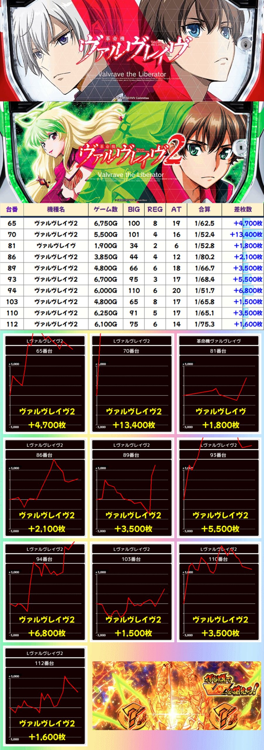 【3台並び】ヴァルヴレイヴ2(92-94番台)→平均+3,700枚