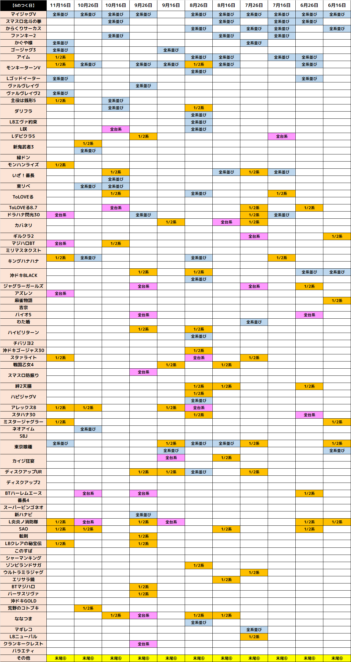 下記にある過去の仕掛けでは、全台系・1/2系・並びの仕掛けが多数出現しております。今回も同レベルの仕掛けが出現するのは間違いないと思われます!