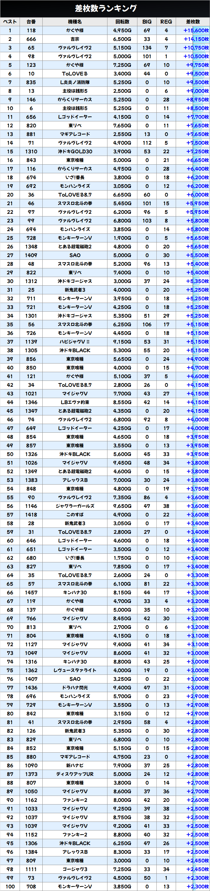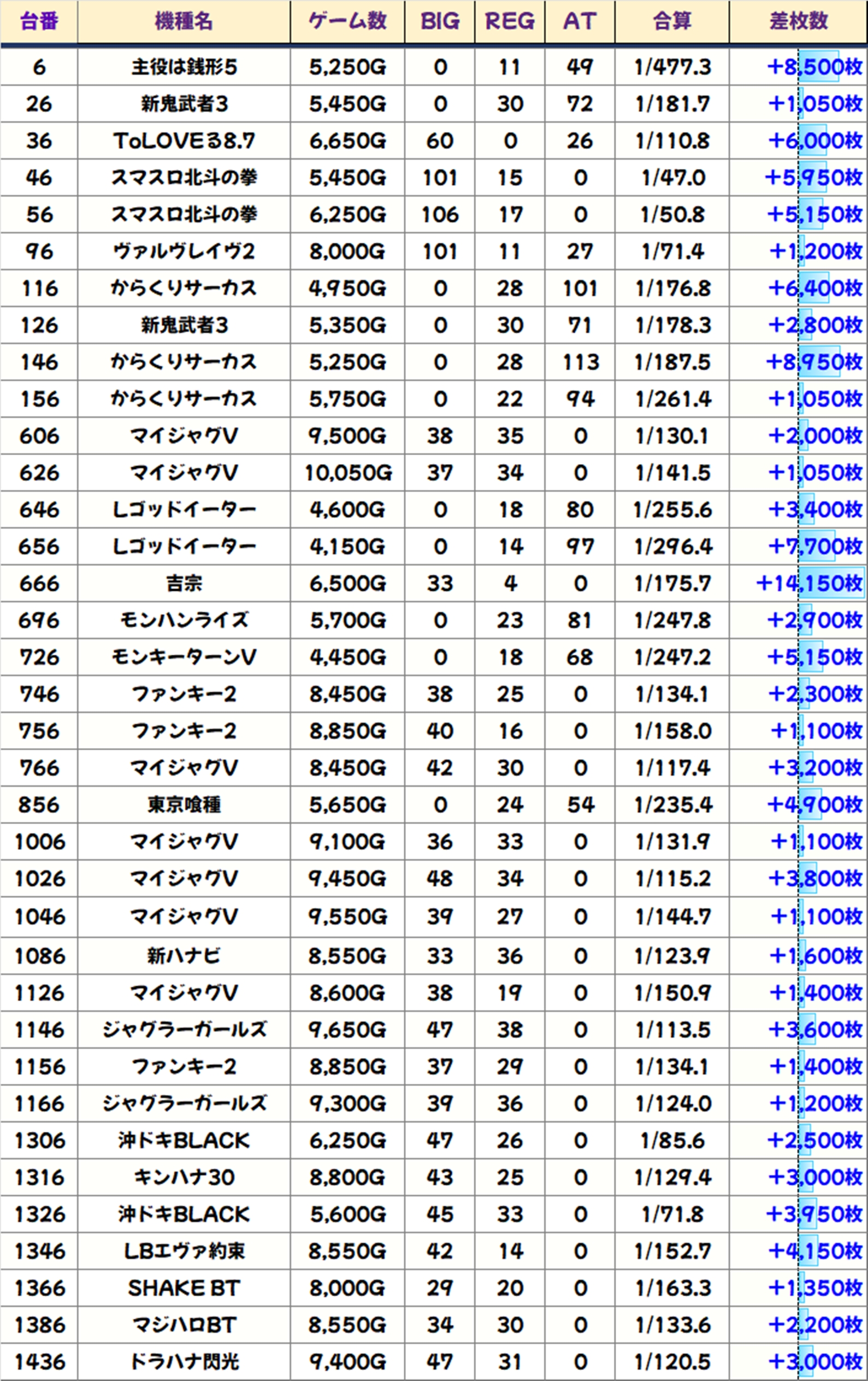各機種の優秀台をピックアップしますのでデータを確認してみましょう!