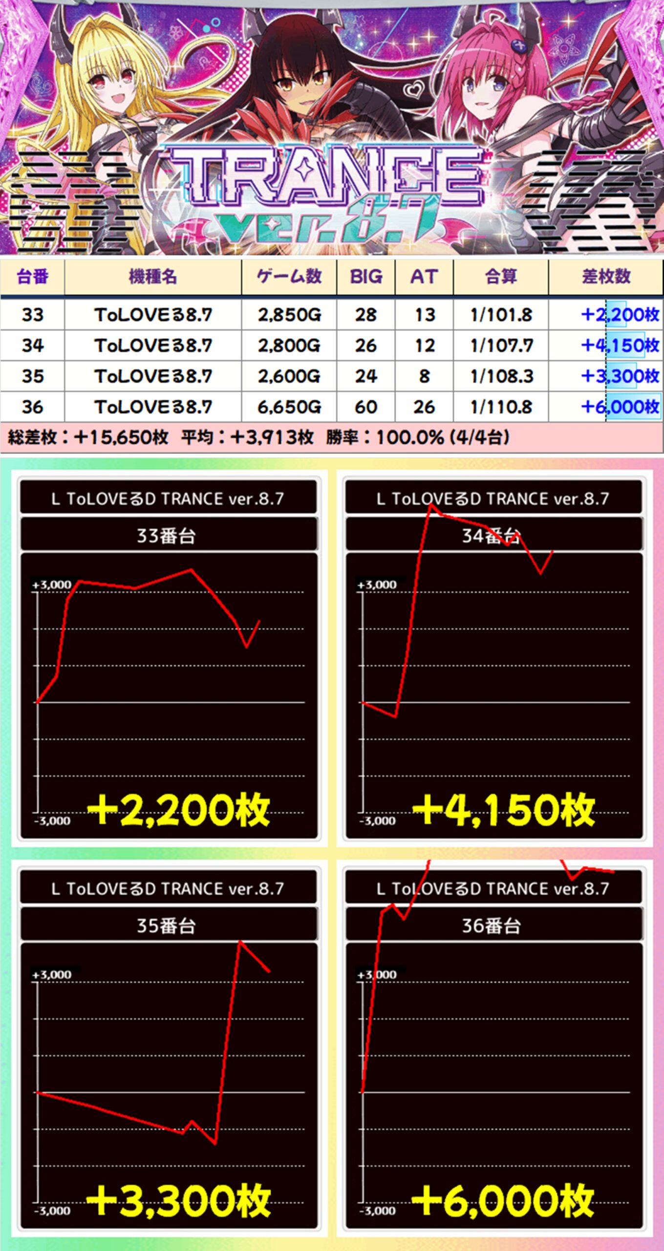 【4台並び】ToLOVEる8.7(33-36番台)→平均+3,913枚