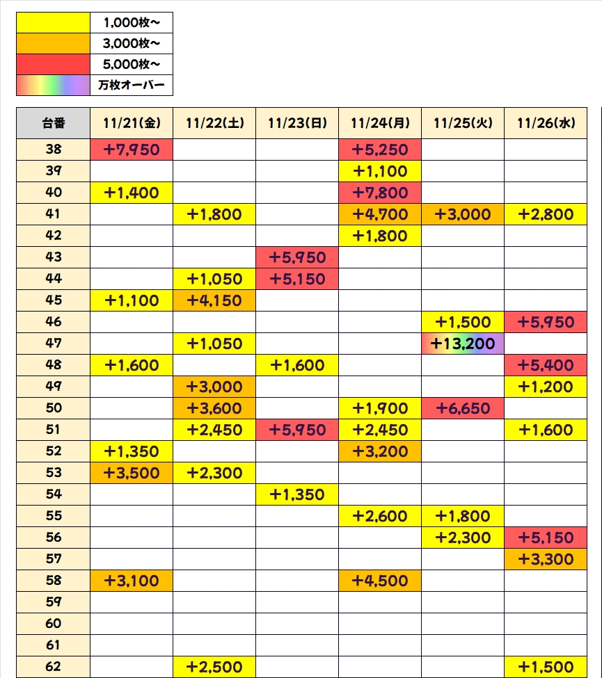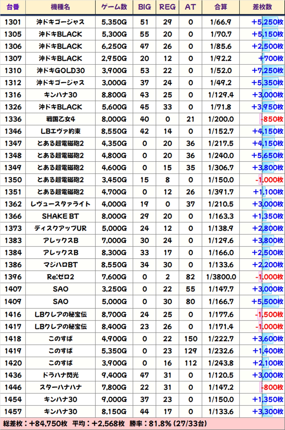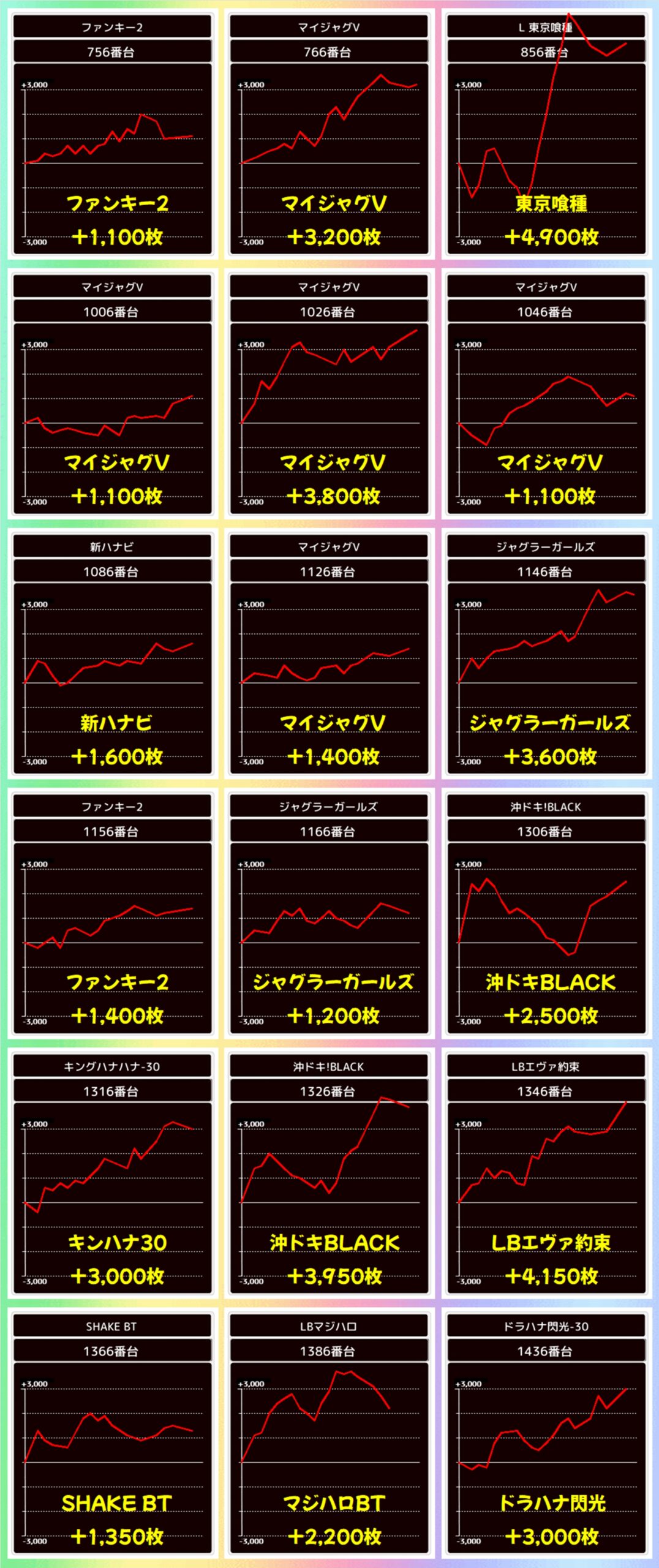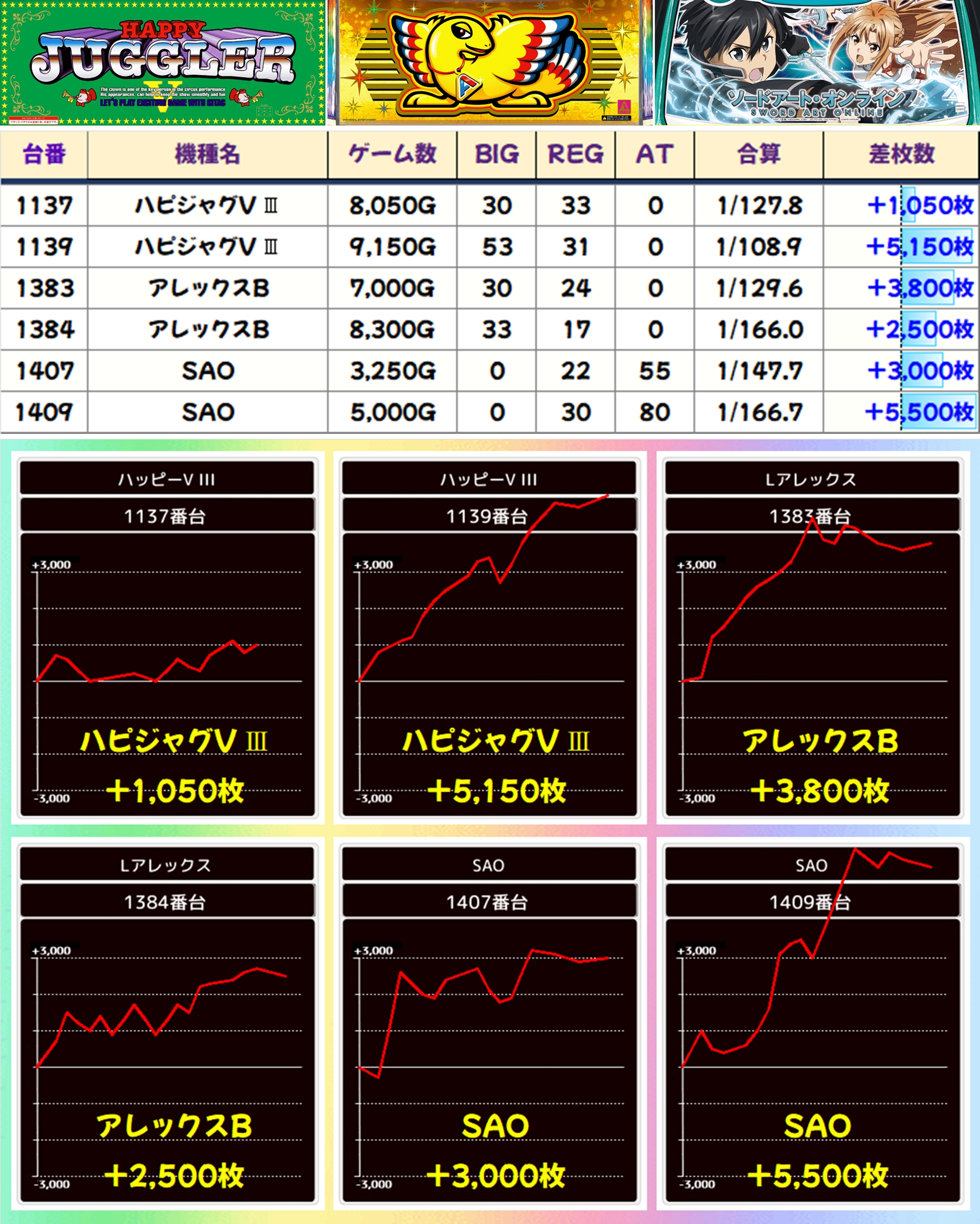 今回も各機種の優秀台(+1000枚超)をピックアップ!